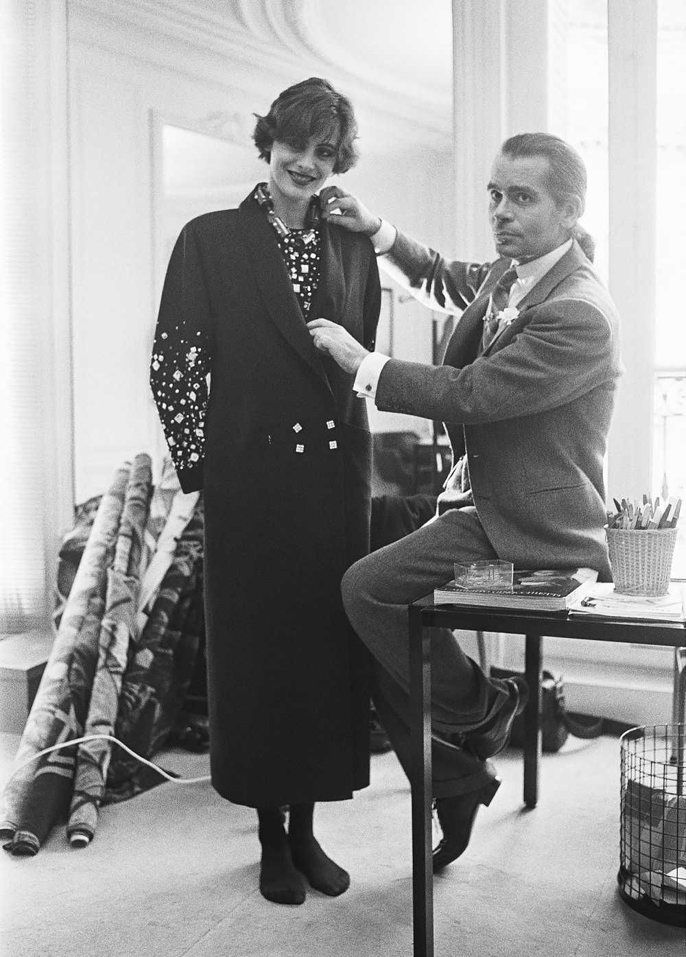 Карл Лагерфельд и Инес де ля Фрессанж на примерке в ателье Chloé, 1983