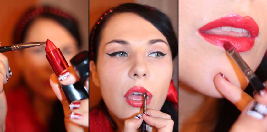 - Яркие, насыщенные и темные пигменты сильно подчеркивают контур рта. Это хорошо смотрится при выраженной и аккуратной «дуге (арке) Купидона». Когда данная впадина почти отсутствует, а контурные линии нуждаются в коррекции, желательно наносить неброскую гамму.