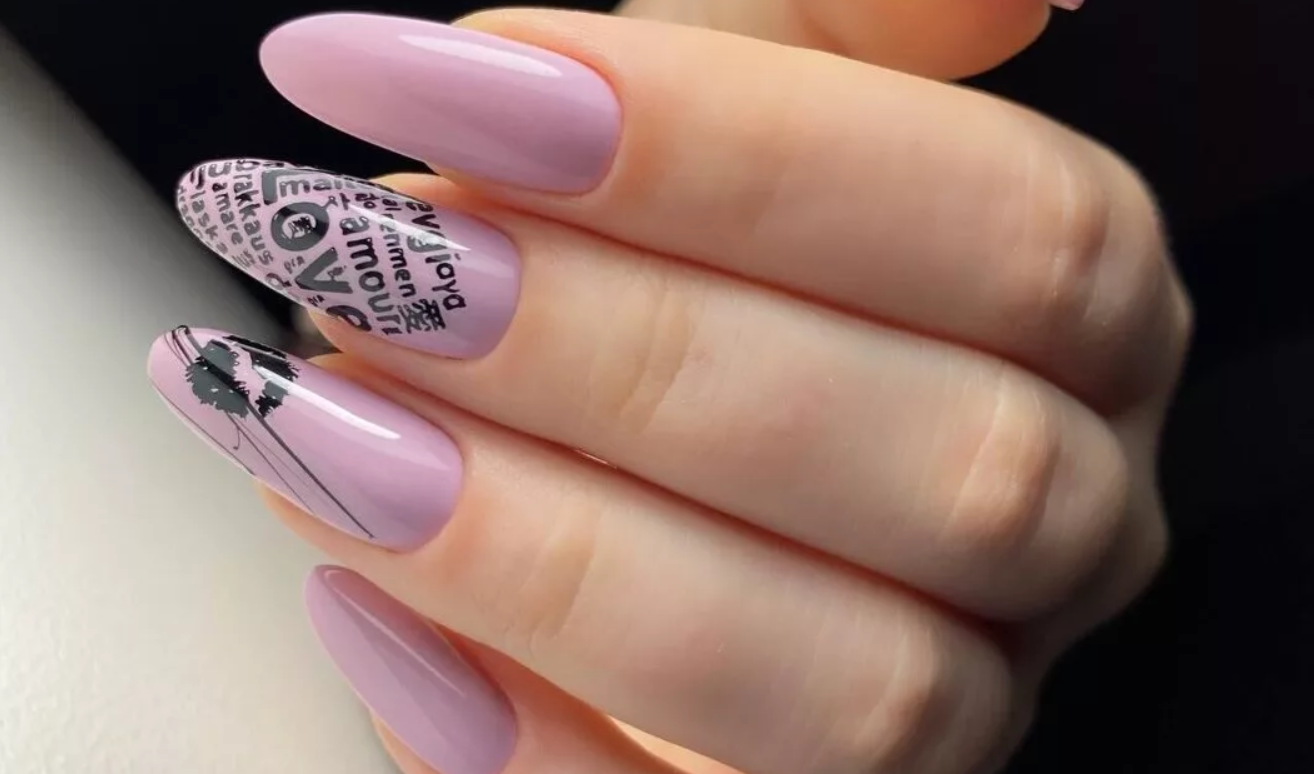 Сделать маникюр более актуальным можно, добавив на несколько ногтей модные надписи. Молодые девушки обычно выбирают имена, лозунги или поздравления. Разместить надписи можно на любых ногтях, однако трендовым будет считаться расположение слов на больших пальцах.