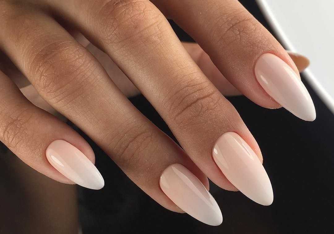 Изящнее всего смотрится сочетание тёмных тонов у основания ногтя и светлого кончика, так как это выглядит очень естественно.
