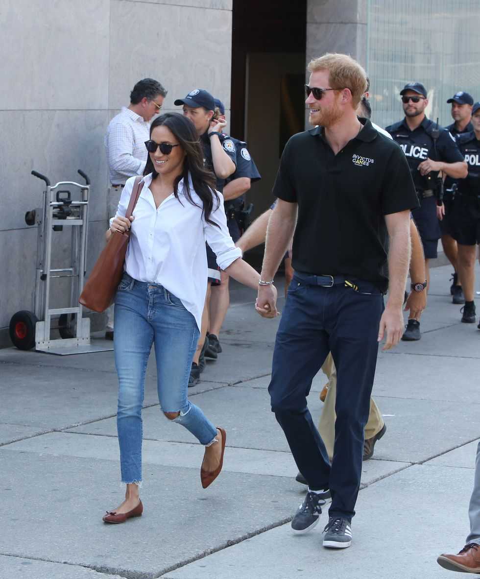Будущая жена принца Гарри в рваных джинсах и белой рубашке