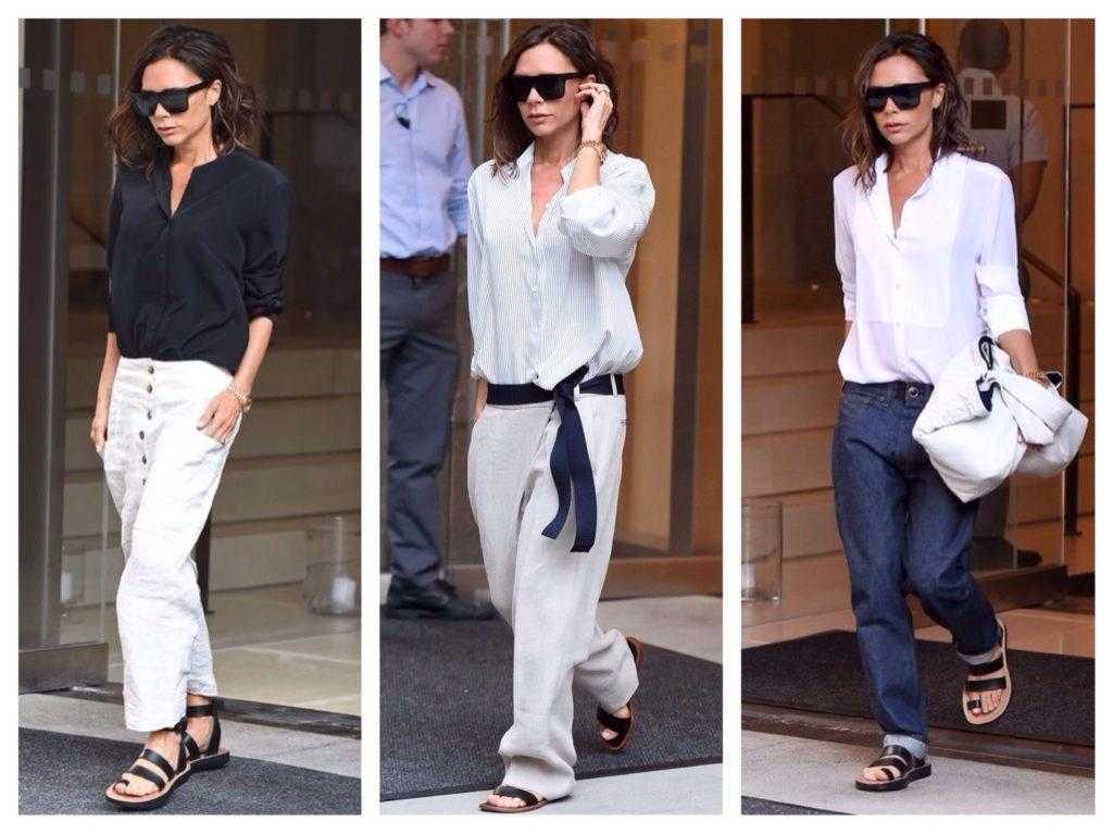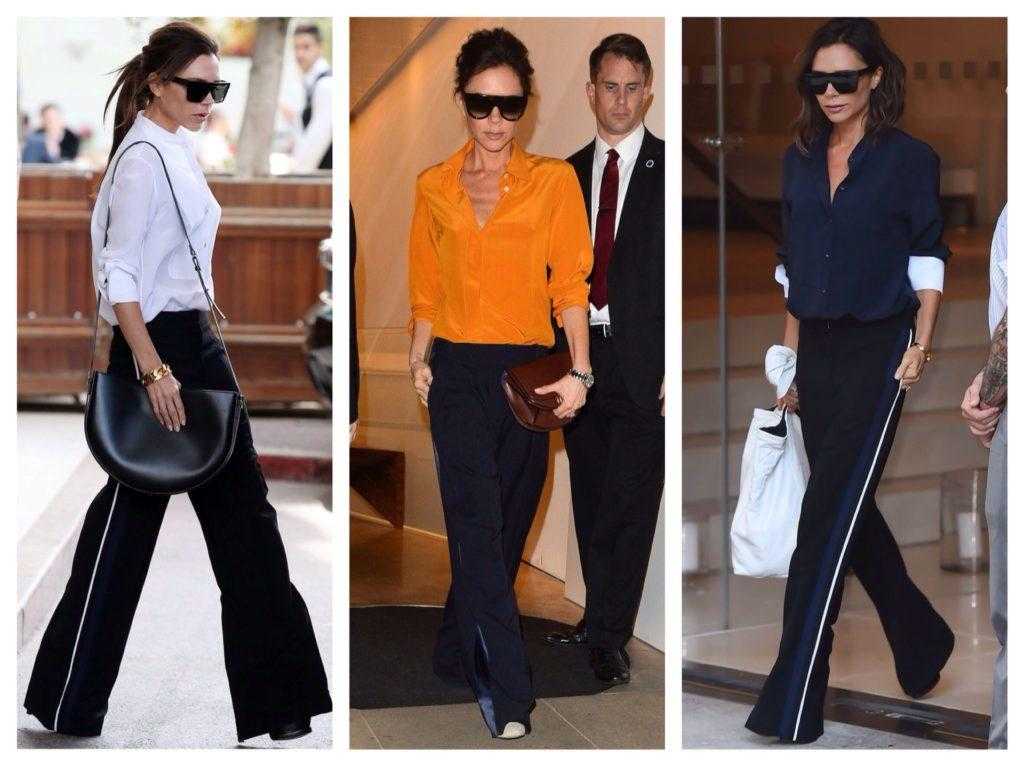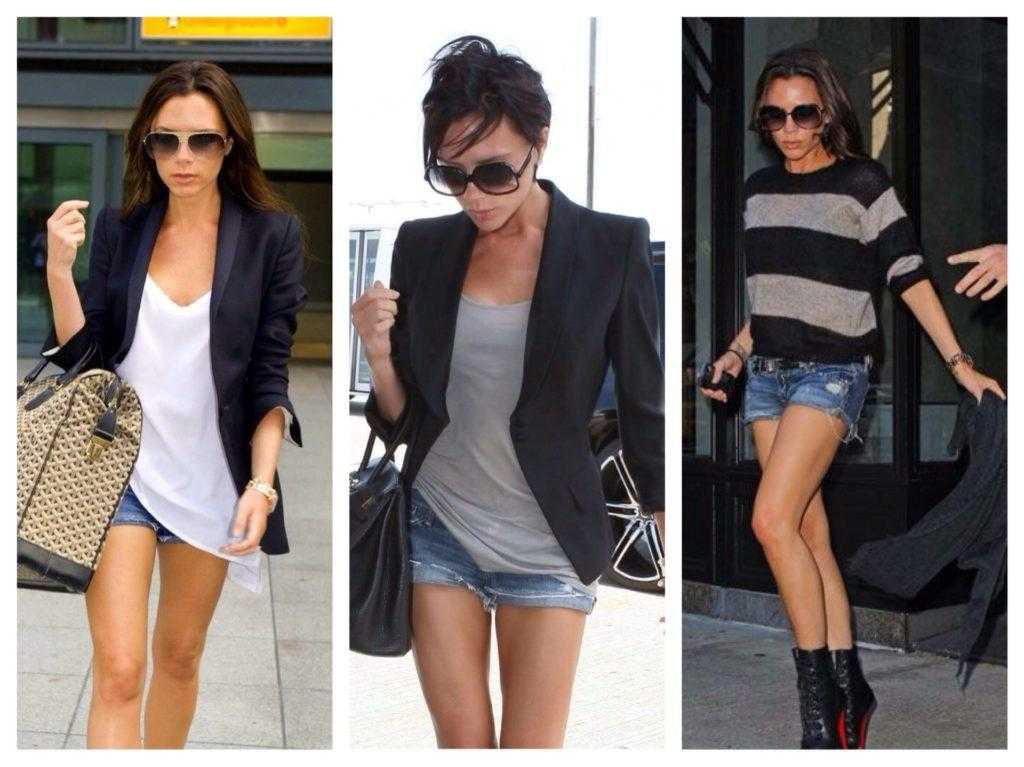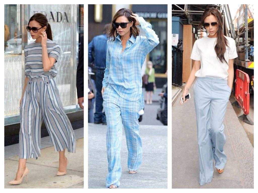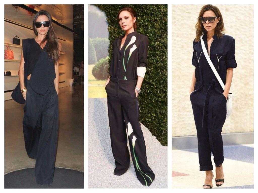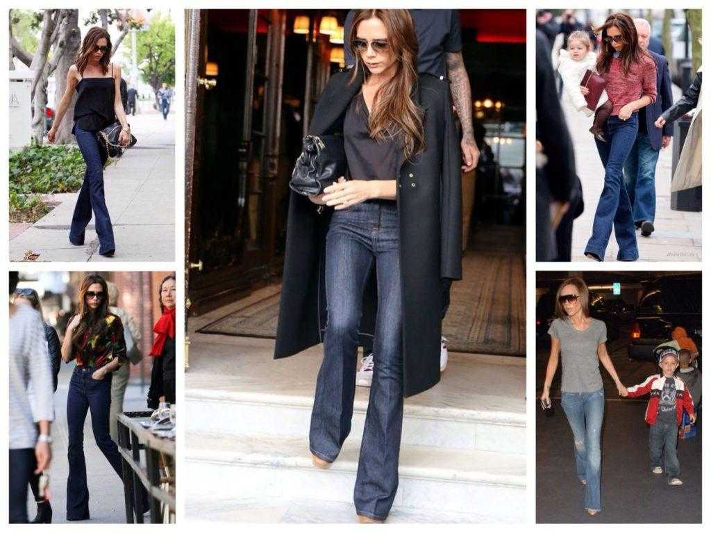 - Вики очень любит джинсы, но в ее коллекциях не найти моделей с бросающимся в глаза декором, потертостями и такими модными дырками на коленках. Ее расклешенные джинсы с завышенной талией подчеркивают достоинства фигуры.