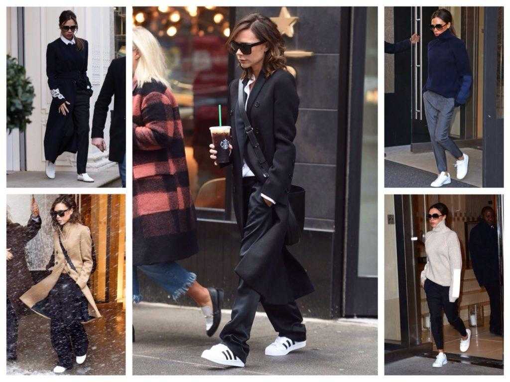 Любимые джинсы Виктории в этом году соседствуют с шерстяными расклешенными брюками максимальной длины, позволяющей полностью прикрыть высокий каблук.