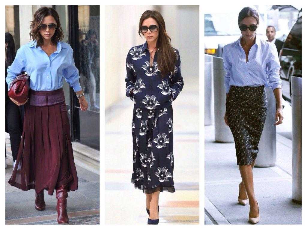 Юбки и платья также любимы Викторией. Каждая коллекция от дизайнера предлагает интересные варианты моделей, сама же модница их носит с удовольствием, как видно на фото. И в первую очередь — платья футляры. Благодаря женственному силуэту они помогают подчеркнуть талию, придать фигуре плавные изгибы. То же касается и юбок карандашей, особенно с завышенной талией.