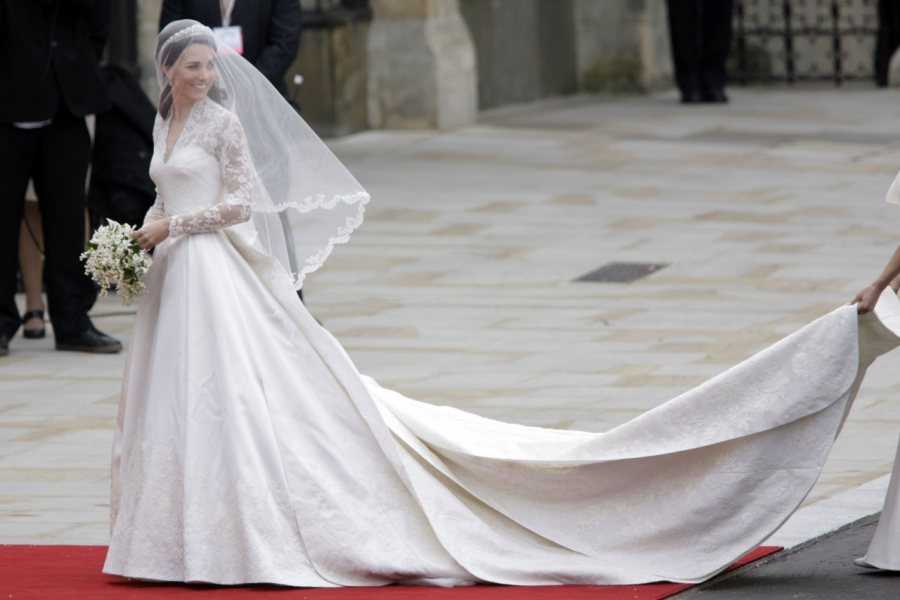 Очаровательный крой длинного шлейфа и оригинальные рукава белоснежного свадебного наряда принцессы выполнены в соответствии с английскими традициями, безусловно, подчеркивали безупречный вкус его хозяйки.