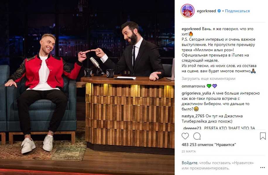 Инстаграм Егора Крида наполнен множеством личных фотографий и видео с концертов певца. Здесь артист нередко просит помощь у своих подписчиков, т.к. занимается благотворительностью для детей. Число подписчиков стремительно растет.