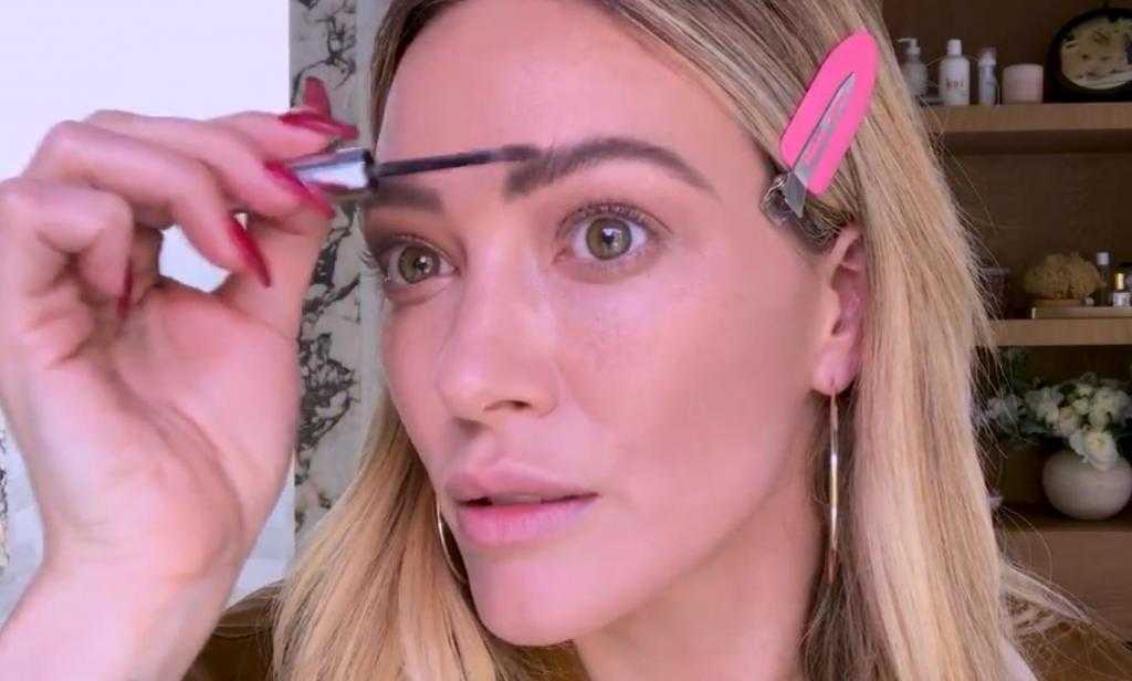 В качестве теней для век Хилари наносит коричневые мерцающие тени, а также тени с медным блеском, что подчеркнет ее дневной нарядный образ.
