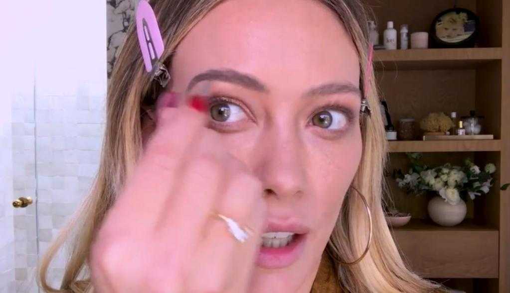 Далее Дафф носит осветляющий крем для век, а затем тонированную сыворотку-основу. Девушка признается, что в некоторых моментах нанесения макияжа она слишком беспечна, в частности она иногда слишком торопится и не дает каждому слою впитаться в кожу.