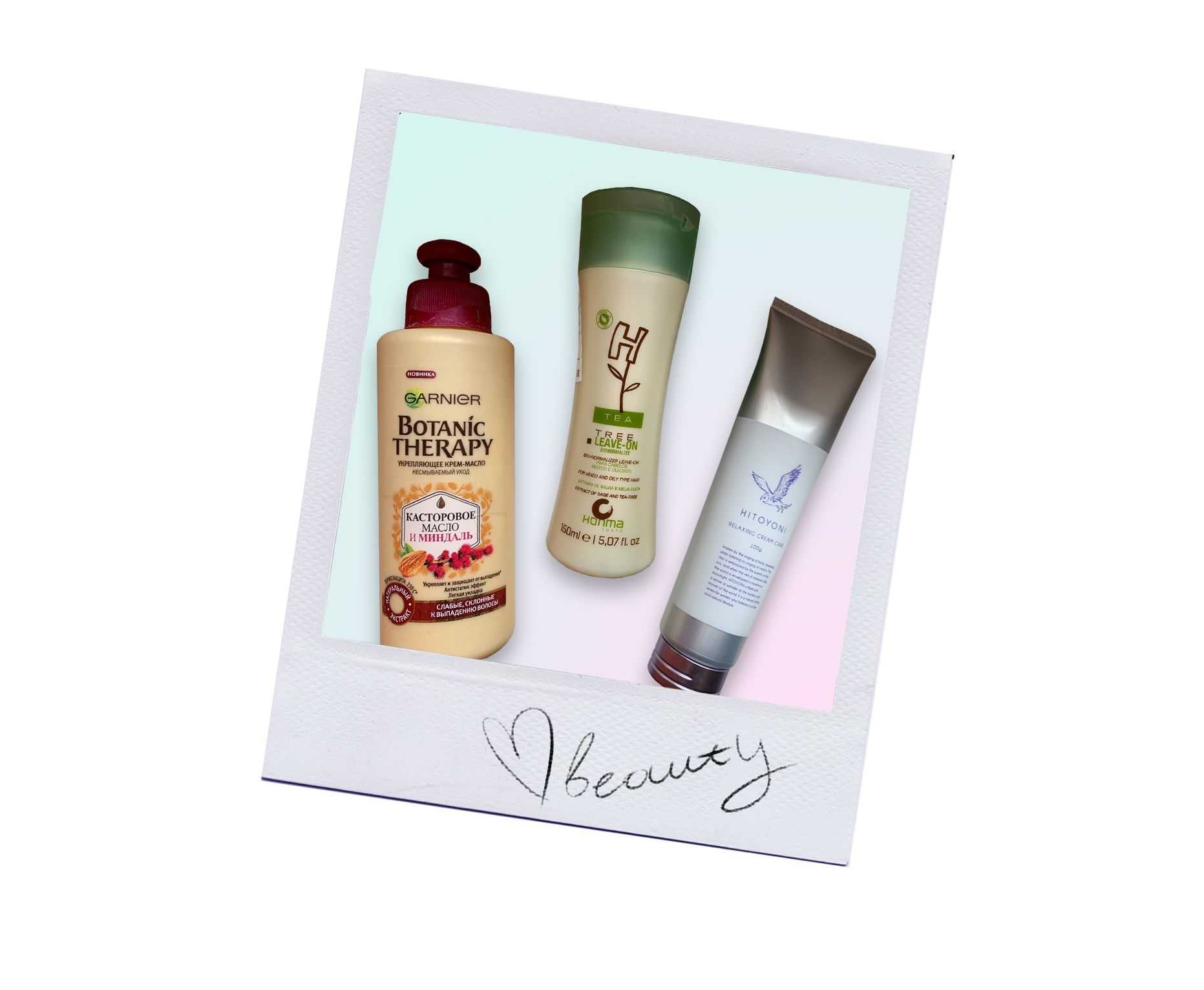 В мой личный топ-3 вошли: молочко-крем для волос Hitoyoni Relaxing, кондиционирующая маска H-Tea-Tree и укрепляющее крем-масло Garnier – Botanic Therapy. Все эти средства – несмываемые, что является огромным плюсом: перспектива весь день проходить в шапочке для душа обычно не радует, даже если не нужно никуда выходить.