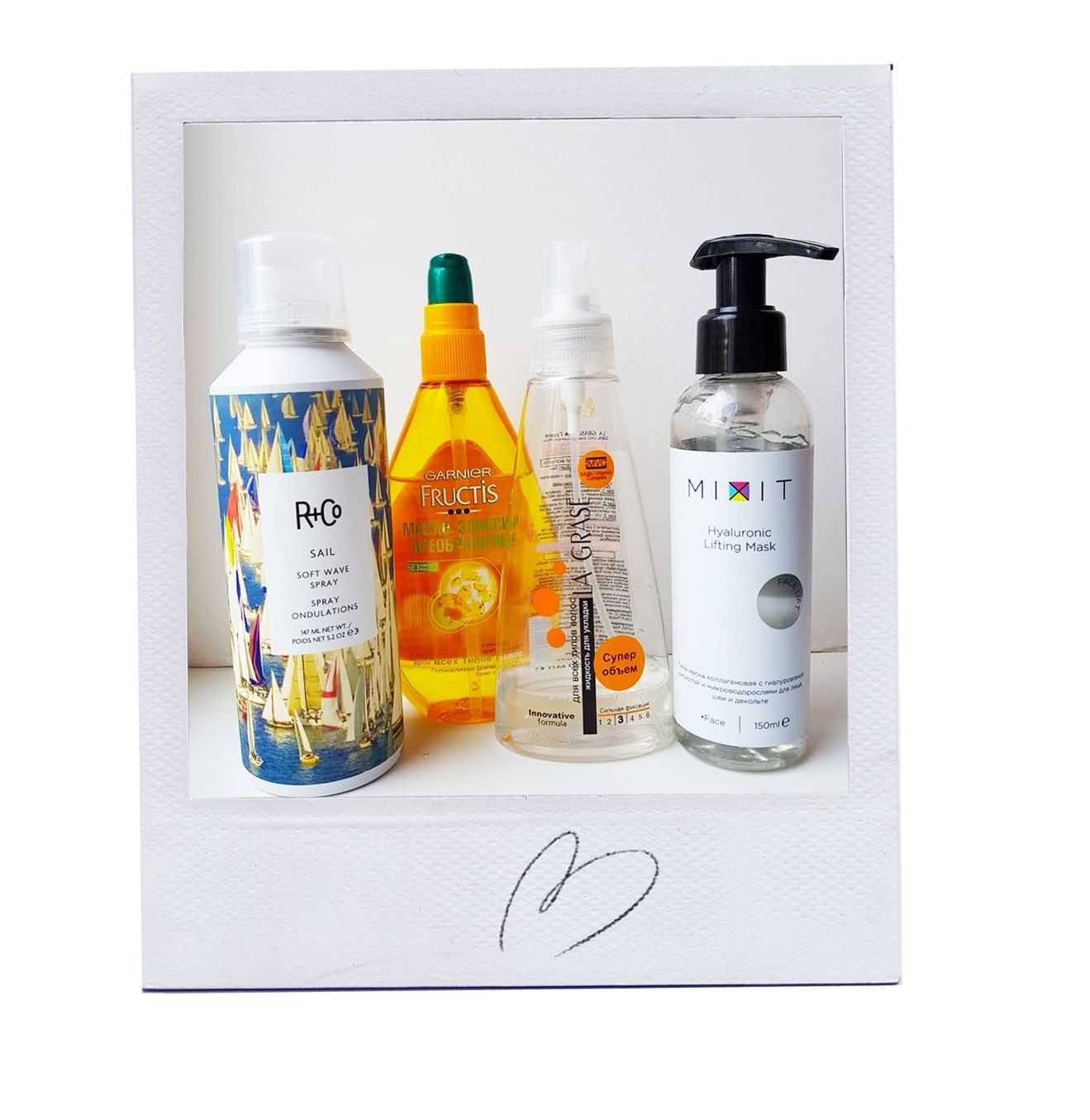 Если хочется создать дополнительный объем, также применяю жидкость для укладки La Grase «Супер объем». Наношу ее на корни волос, а затем сушу феном. В качестве финального штриха, чтобы немного утяжелить кончики волос, использую масло-эликсир Garnier Fructis: буквально одну каплю средства растираю между ладоней, а затем провожу по кончикам волос