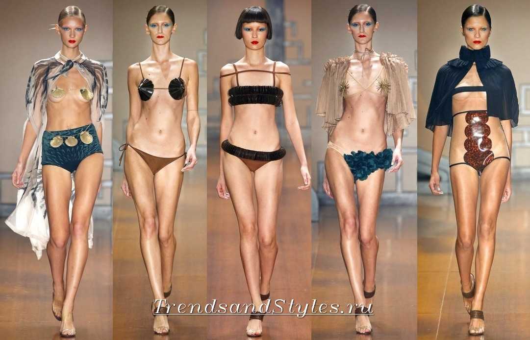 Self, She и Магистраль представили молодежную версию этого фасона с более облегченным силуэтом и элегантными планками между лифом и трусиками в виде цепочек и сложного плетения из тоненьких тесемок. Для тех, кто хочет основательней прикрыть тело, есть целый ряд моделей с широкими планками – они подчеркивают красивые изгибы силуэта и великолепно придают стройности фигуре.