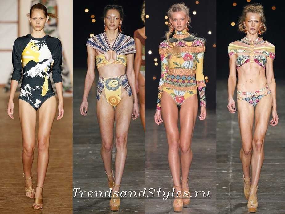 Разнообразные принты остаются в тренде наступающего сезона. Рисунки в виде цветочных мотивов, хищных расцветок, геометрических и абстрактных узоров, морских вариаций украшают популярные модели купальников.