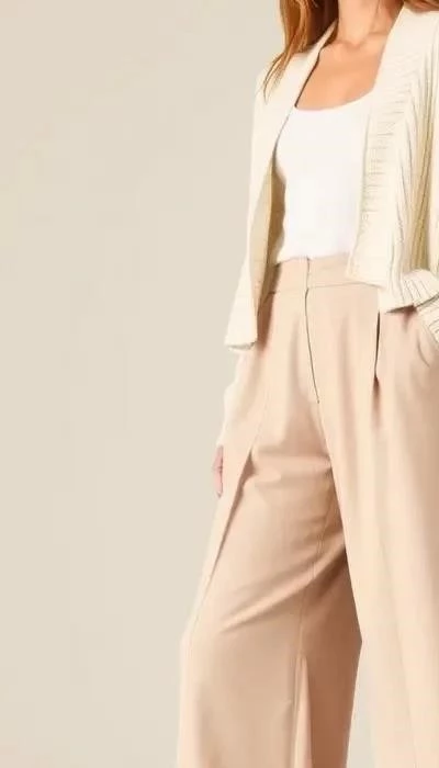 Не стоит забывать о пропорциях. Если вы выбираете брюки с низкой талией и широкими брючинами, то верх должен быть более облегающим. И наоборот, если вы предпочитаете узкие брюки, то можно выбрать более объемный верх. Важно соблюдать баланс, чтобы создать гармоничный образ.
