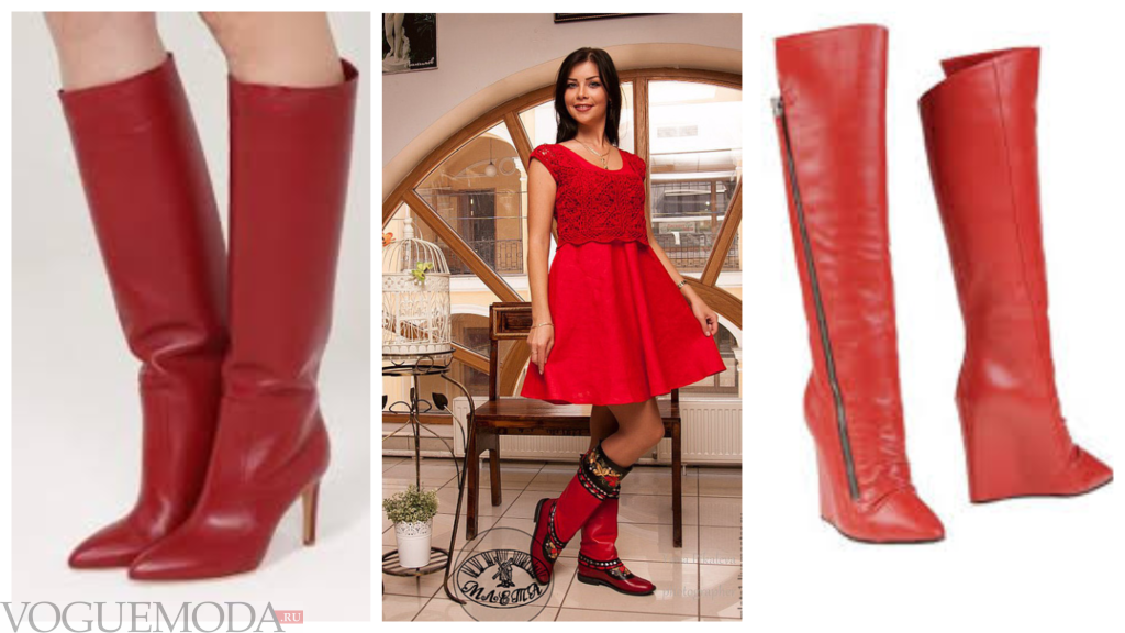 Кожаные красные сапоги с чем носить фото