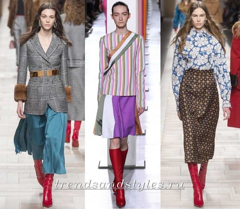 Юбки средней длины гармонично смотрятся с ботильонами на плоской подошве или на устойчивом каблуке.
