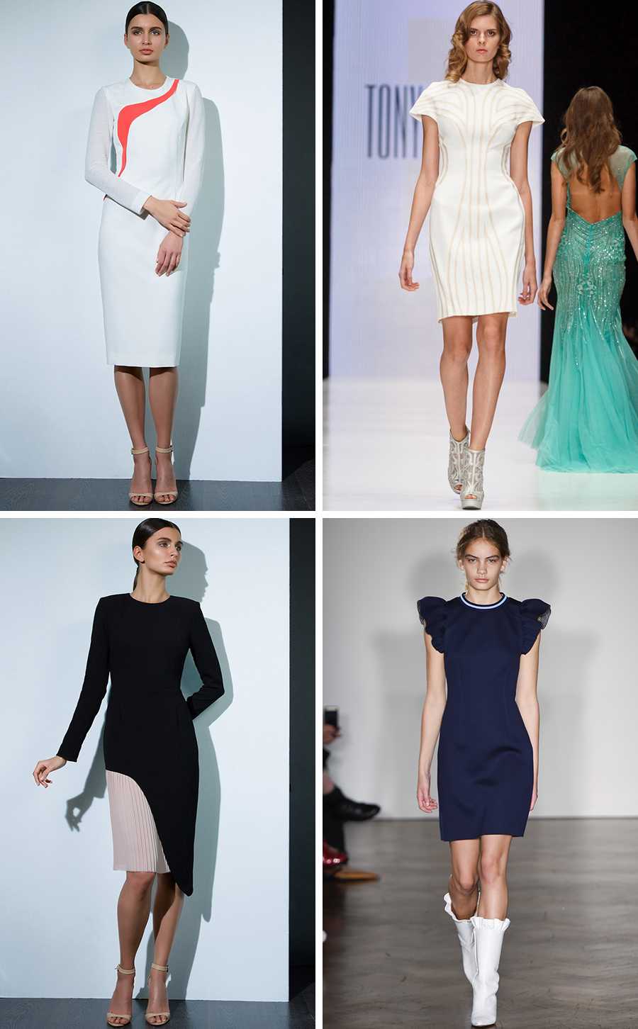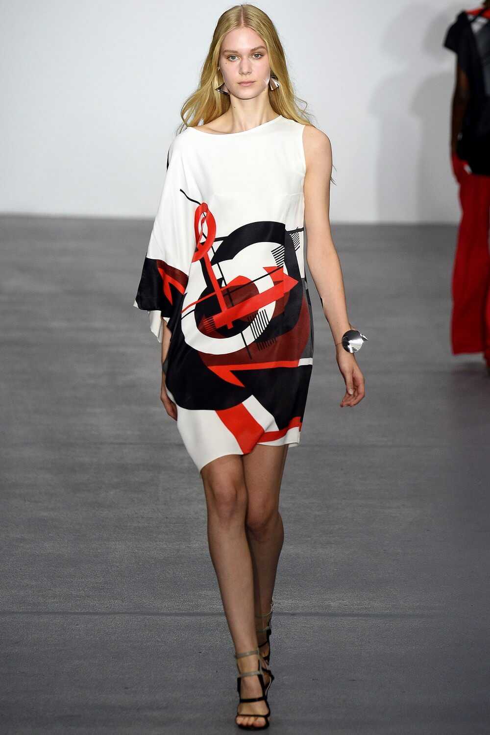Модные фасоны платьев 2016 также включают асимметрию: яркая вещь на одно плечо, как у Jonathan Saunders, может добавить красок в ваш гардероб.