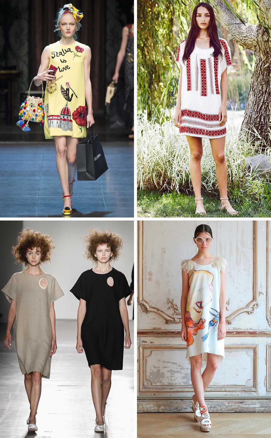 Oversize (свободный размер) остается актуальным: платья в стиле бохо с этническими мотивами, удлиненные рубашки, силуэты типа «трапеция».
