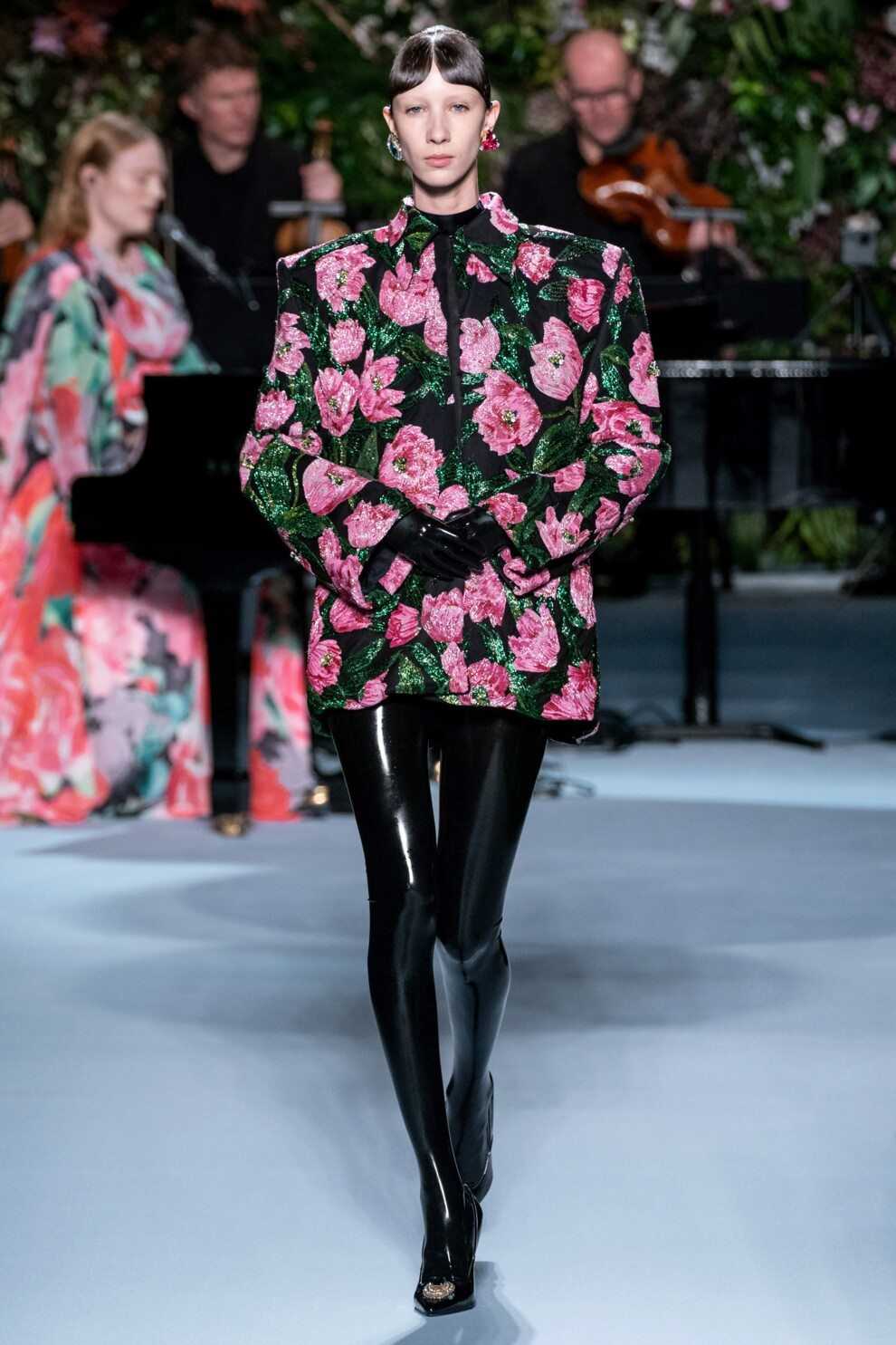 Фееричному и веселому духу новогоднего праздника будут соответствовать кроткие платья из пайеточной ткани. При этом оттенок убора и даже узор из блестящей бижутерии на наряде может быть любой: цветы, анималистические принты и даже целые картины.