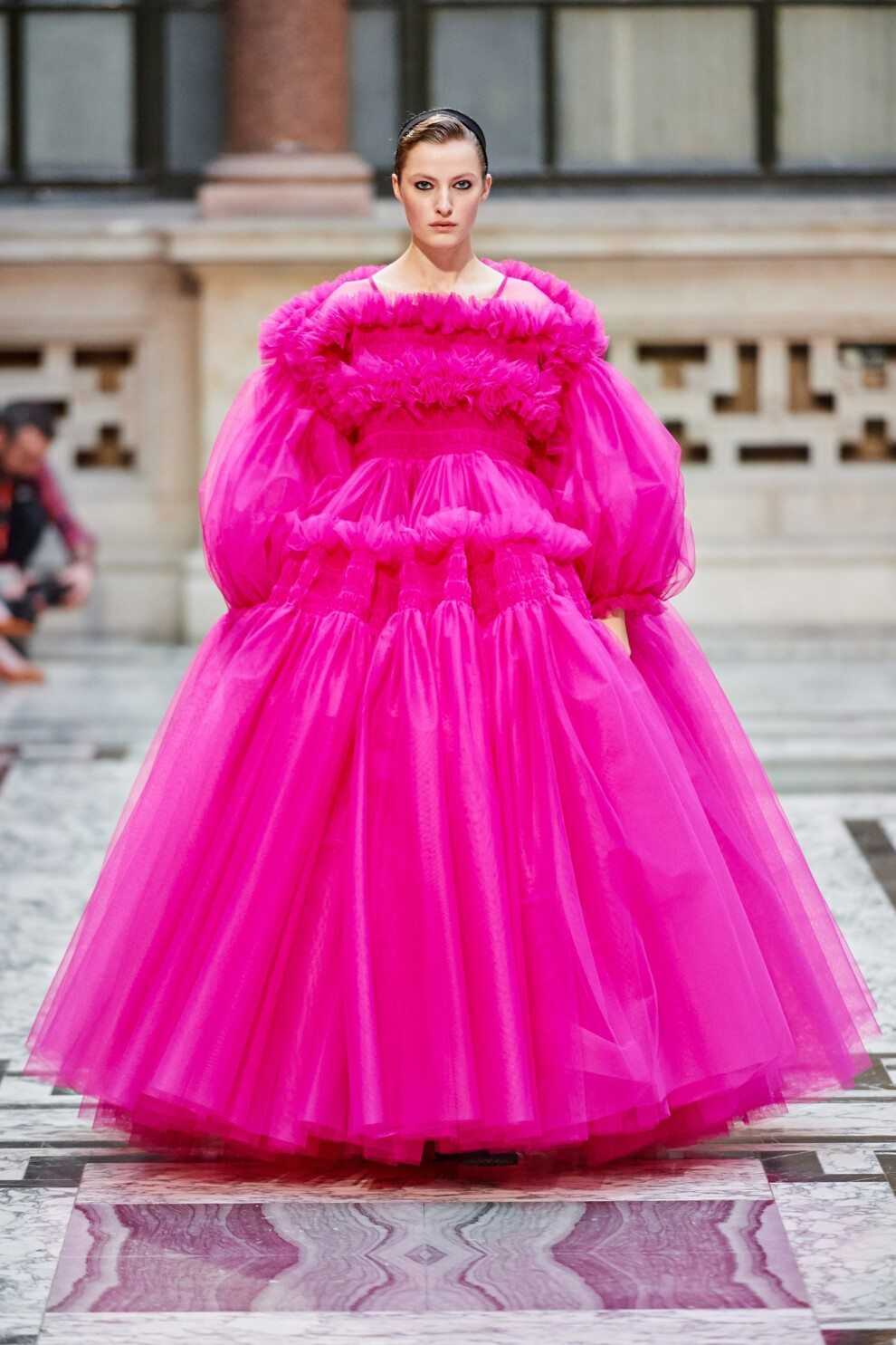 Асимметрия продолжает чаровать фасонами на одно плечо и каскадными платьями.