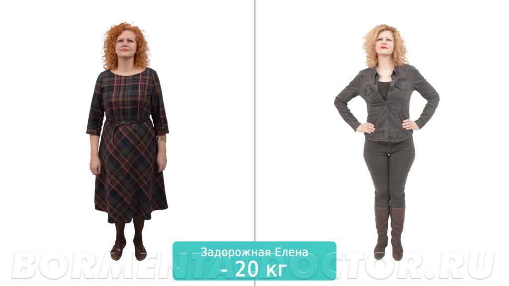 В отчаянии Елена записалась на годовую программу снижения веса «Доктор Борменталь». Сперва она очень боялась, что целый год придётся голодать. Но, к радости Елены, курс похудения вполне соответствовал её образу жизни: надо было есть часто, в том числе и на ночь — в общем, делать так, она привыкла. А психотерапевтические практики, входящие в курс, буквально окрылили! Благодаря боевому настрою за 7 месяцев женщина вернулась в дородовые параметры фигуры. Все преграды к счастью рухнули, жизнь кардинально изменилась и преподносит ей очень приятные сюрпризы: например, предложение работать моделью. Елена живёт заново, буквально помолодев на 20 лет: здоровая и счастливая, обаятельная и привлекательная!