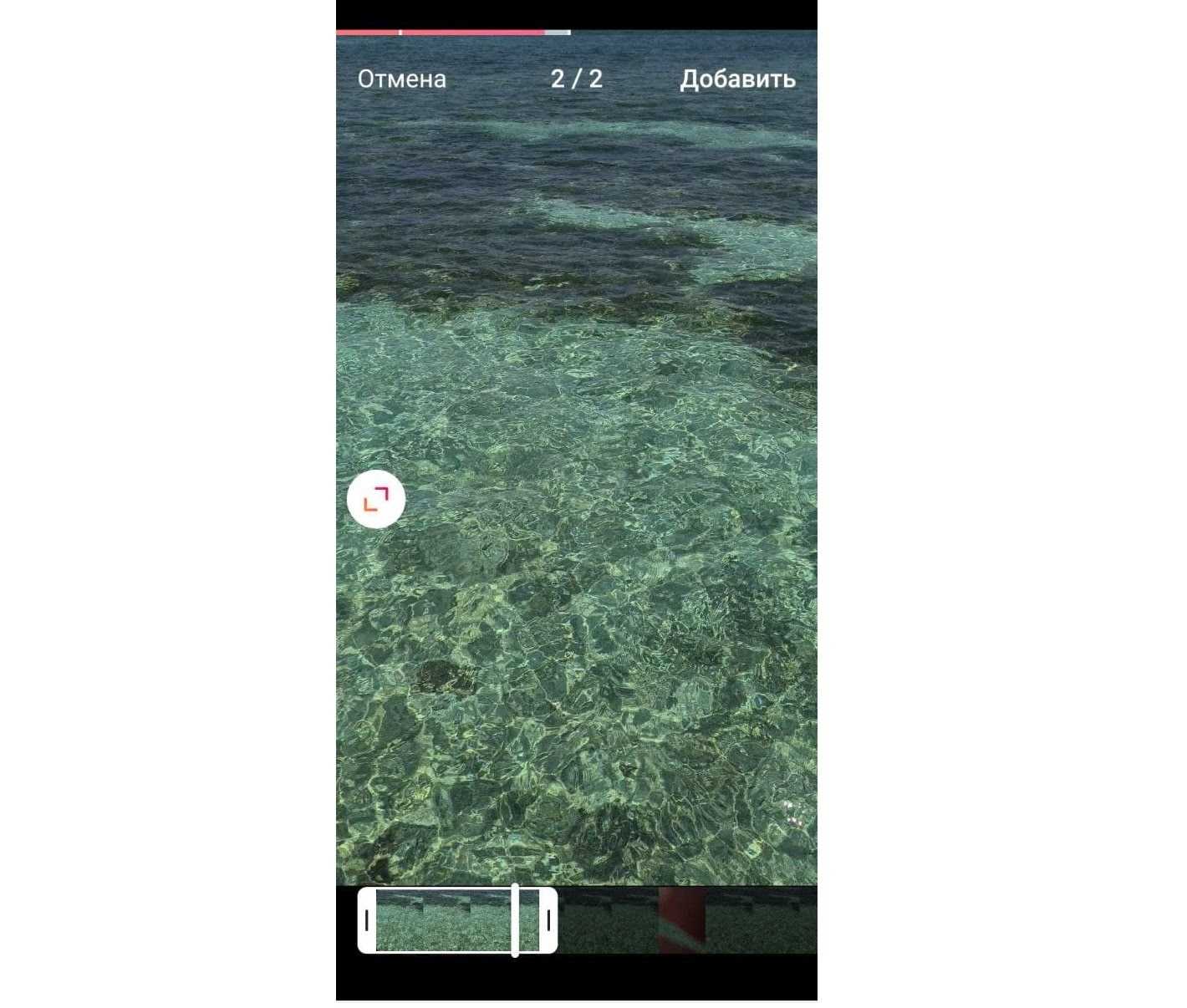 Готовый ролик состоит либо из одного «кадра», либо из нескольких отрезков разных видео. Чтобы заснять несколько моментов, нужно последовательно нажимать и отпускать кнопку записи.
