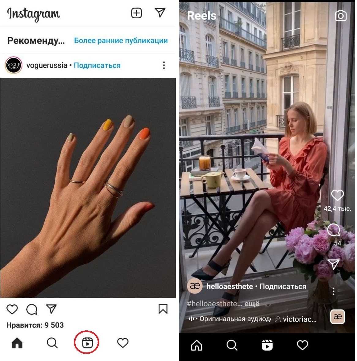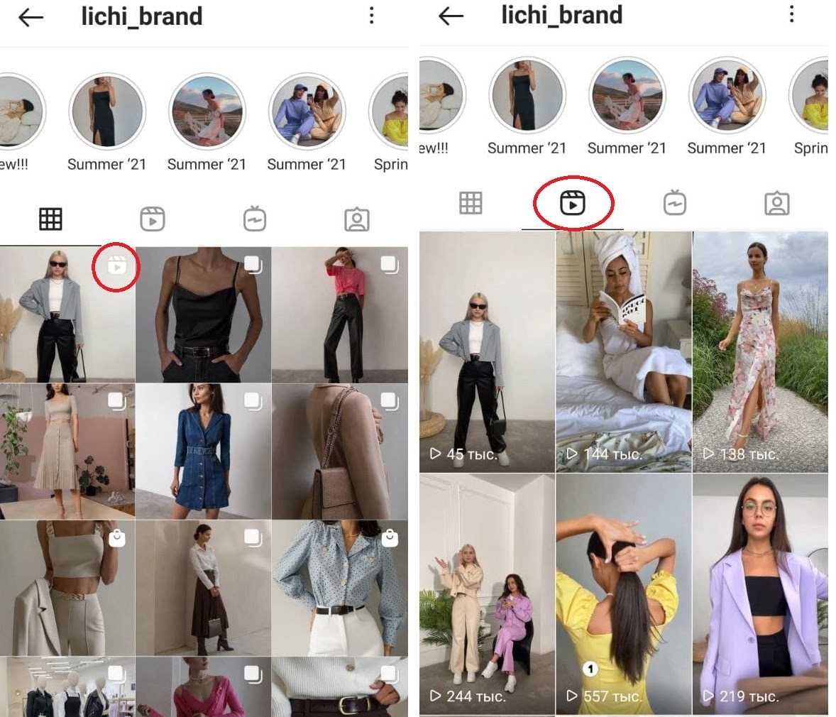 Во-первых, в отдельной вкладке Reels на странице профиля. Во-вторых, в основной ленте со всеми постами. Ролики будут отмечены специальным значком.