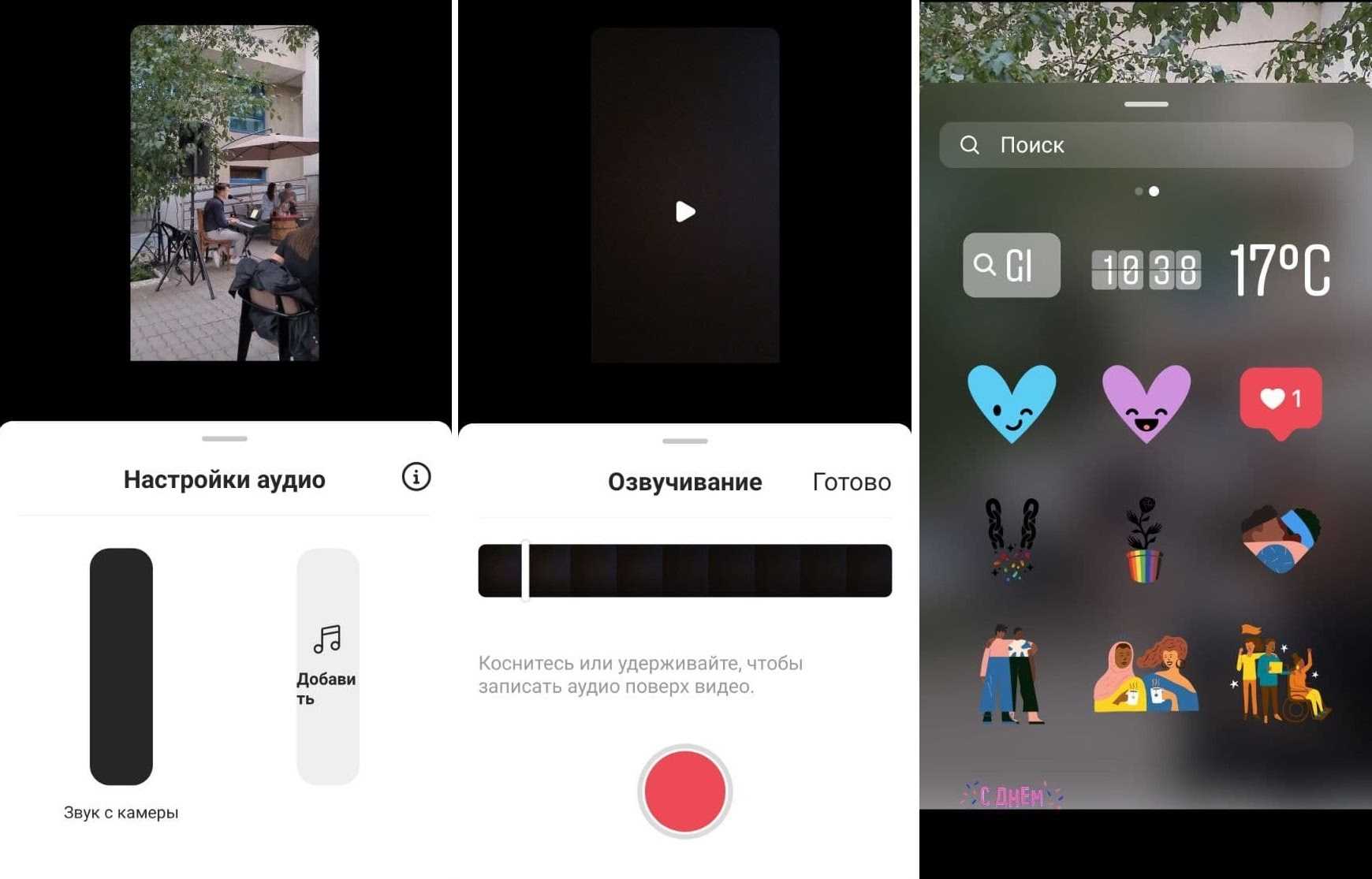 Дальнейшие этапы не отличаются: добавляйте стикеры, текст, эффекты, накладывайте музыку или озвучивайте ролик сами, делайте обложку и описание и выкладывайте в ленту.
