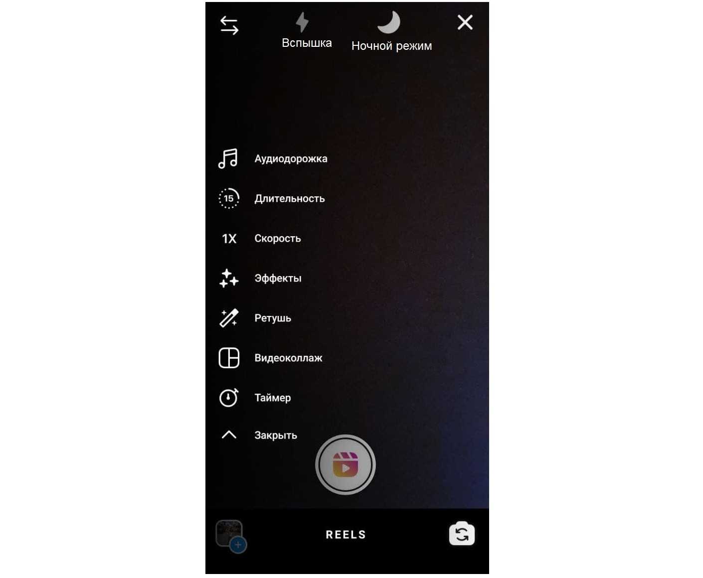 Также во время записи Reels можно включить вспышку или выбрать ночной режим съемки.