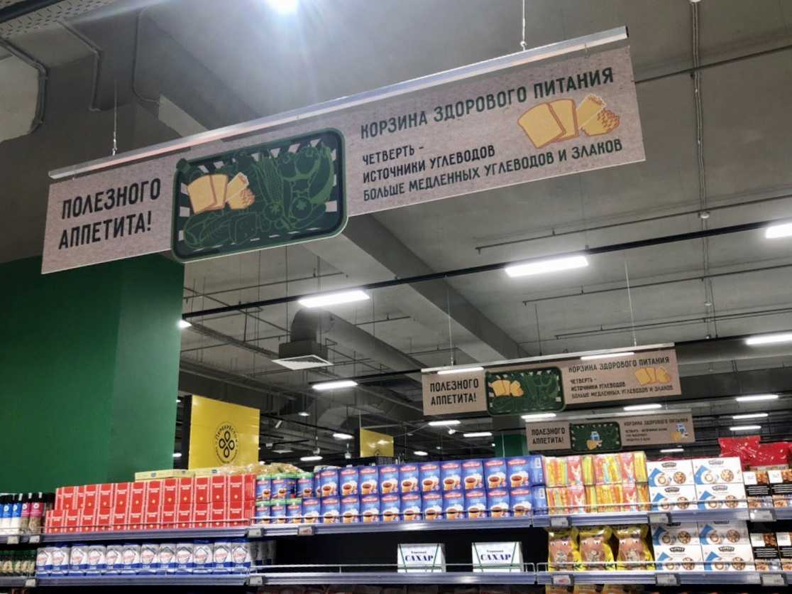 В нашем флагманском супермаркете на проспекте Андропова в Москве мы сделали интересный пилот – «Маршрут полезных привычек». В каждом отделе разместили навигационные таблички о том, что покупателю нужно взять ½ корзины овощей и фруктов, ¼ белка, не забыть про 3 молочных продукта в день. Такая навигация действительно помогла покупателям сфокусироваться на здоровых продуктах, а не на спонтанных покупках. Проект будет развернут еще в 50 магазинах сети.
