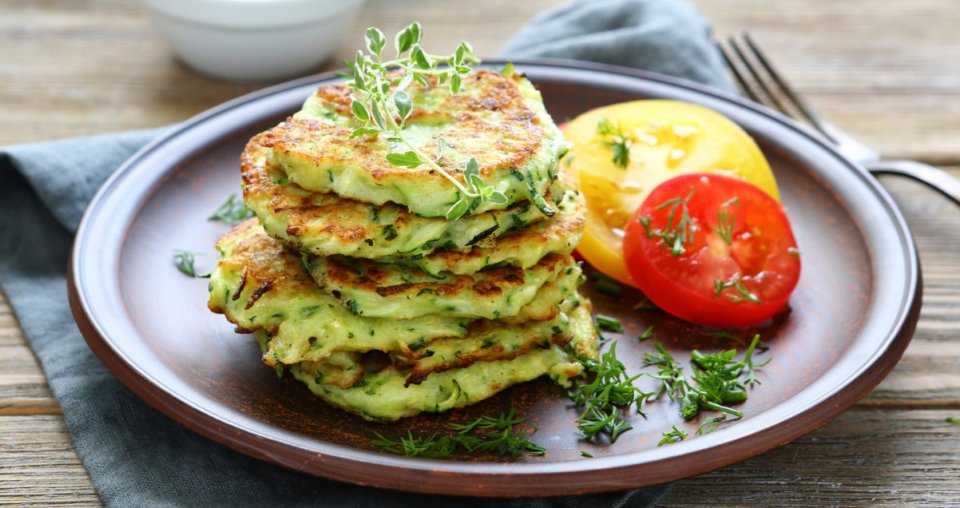 Овсяные хлопья залей кипятком и оставь на 10 минут — до набухания. Кабачок натри на крупной терке, слей жидкость. Смешай все ингредиенты, выкладывай на сковородку и обжаривай с двух сторон. Самые вкусные оладьи — горячие, с пылу-жару. Приятного аппетита!