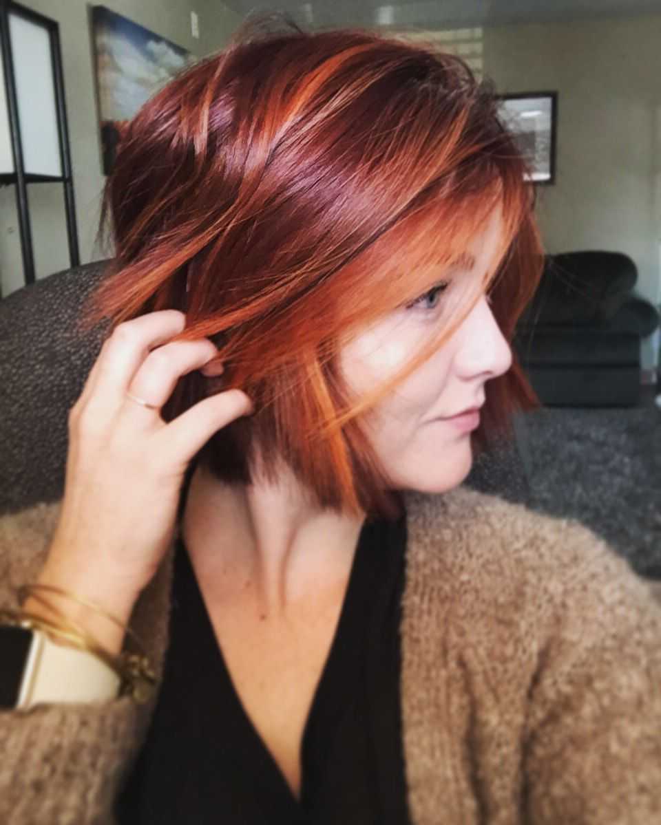 В следующем году цвет только выбирается на пик популярности. Красноватый оттенок должен быть спрятан в глубине окрашивания, раскрывая себя сполна только при выходе на яркое освещение. Неоспоримым преимуществом вариации является универсальность оттенка. Рекомендован он девушкам и женщинам разных возрастов, типов кожи, особенностям внешности.
