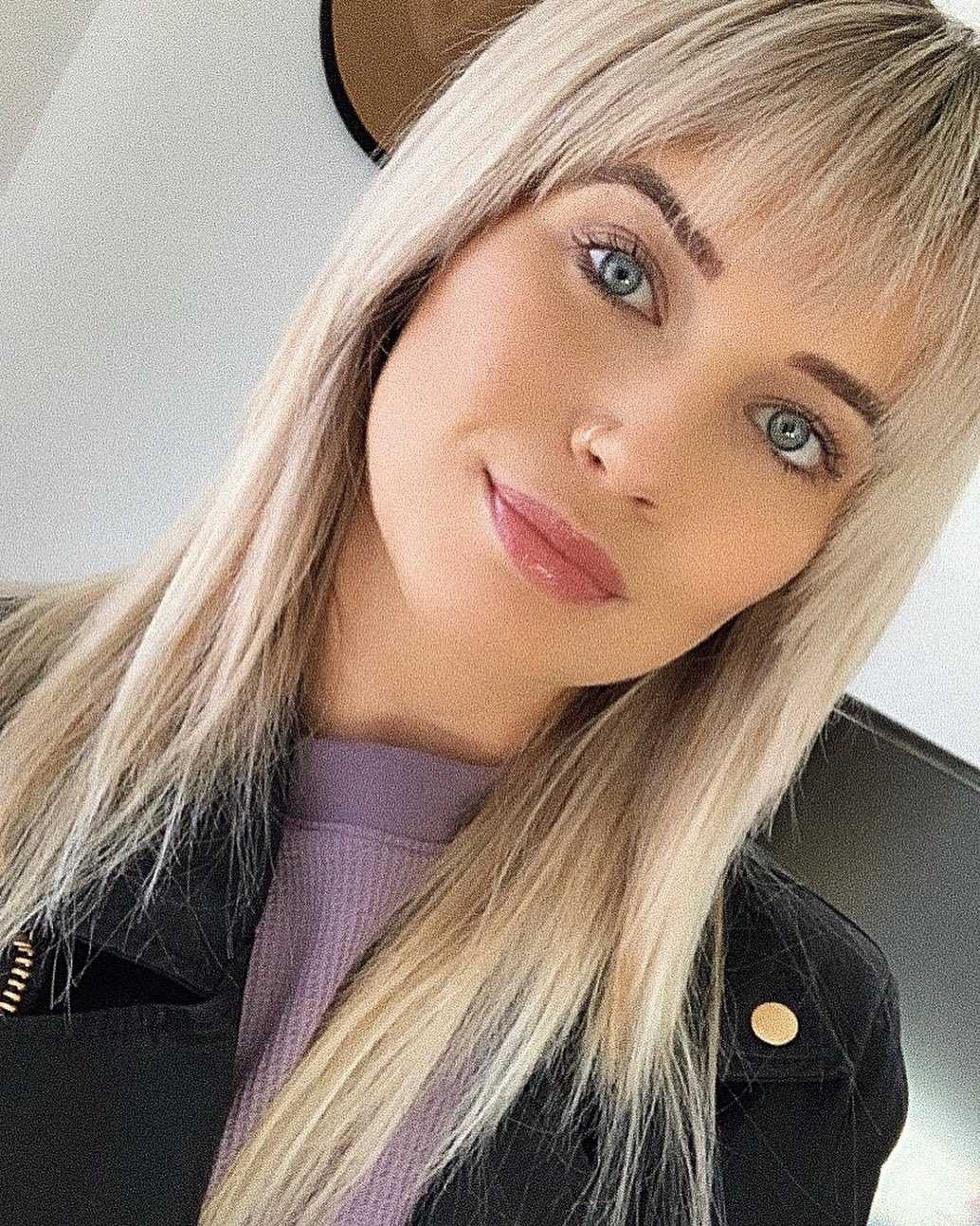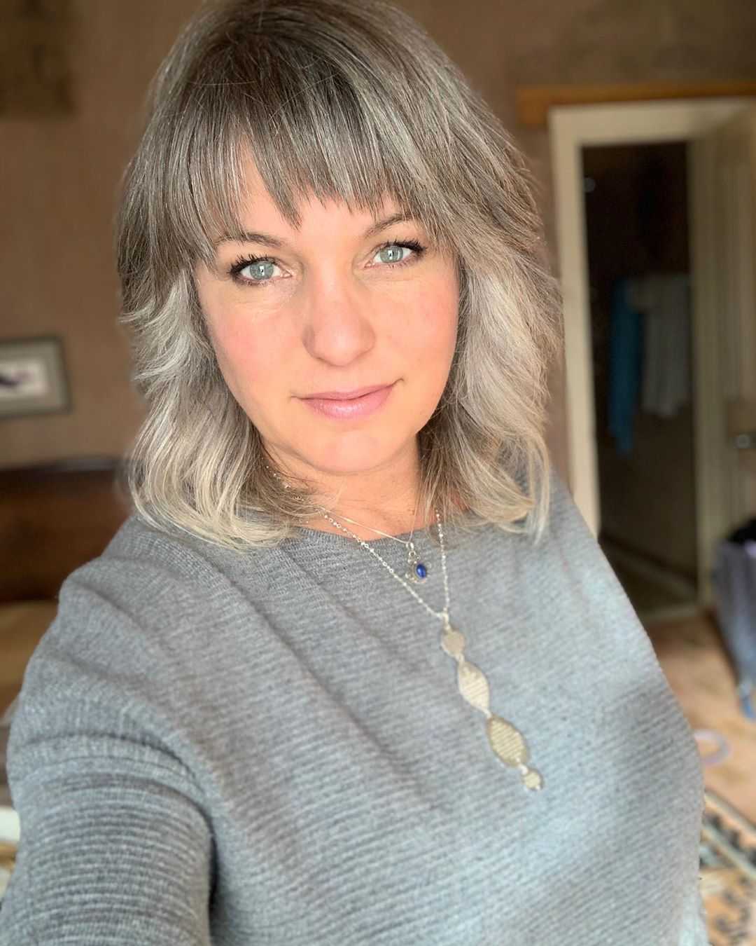 Такую укладку часто дополняют челкой. Она может выполнять ряд функций от завершения общего образа до сокрытия морщин на лбу и акцента на достоинствах. При шегги можно использовать следующие варианты челки: