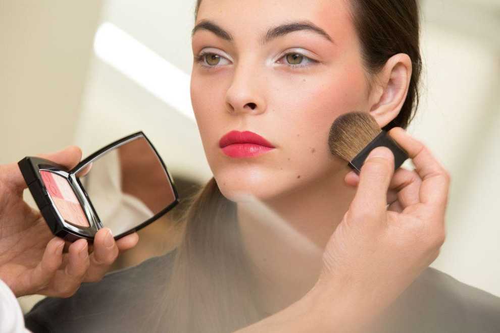 - Третий секрет-нежные щечки с идеальными скулами. Оттенить получившийся цвет лица необходимо при помощи румян. Нанесите их на скулы. Идеальный вариант — румяна на пудровой основе. Красивый рельеф получится при помощи нанесения бронзера