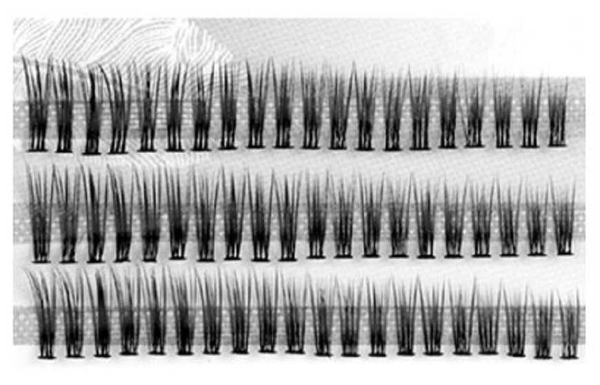 Модель сделана из натурального человеческого волоса, предварительно обработанного специальными составами. Реснички без узелковые, что делает их невидимыми после закрепления на веке.