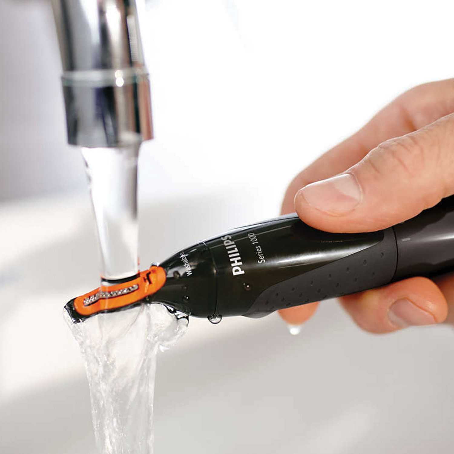 - Очистка водой. Хорошо выбирать водонепроницаемые модели. Очистить лезвия от скопившихся при работе волосков можно под струей воды.