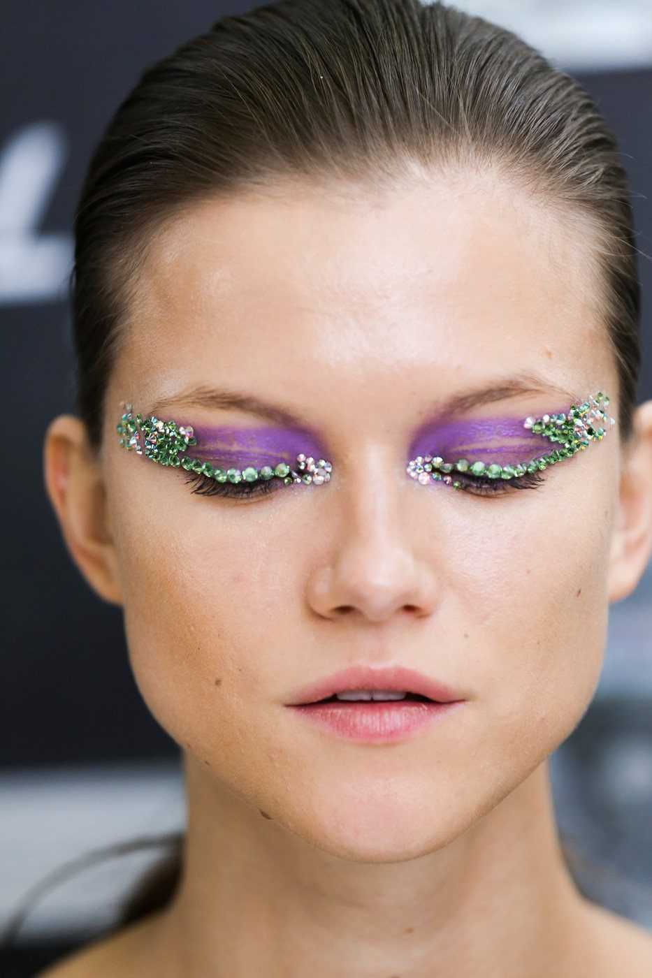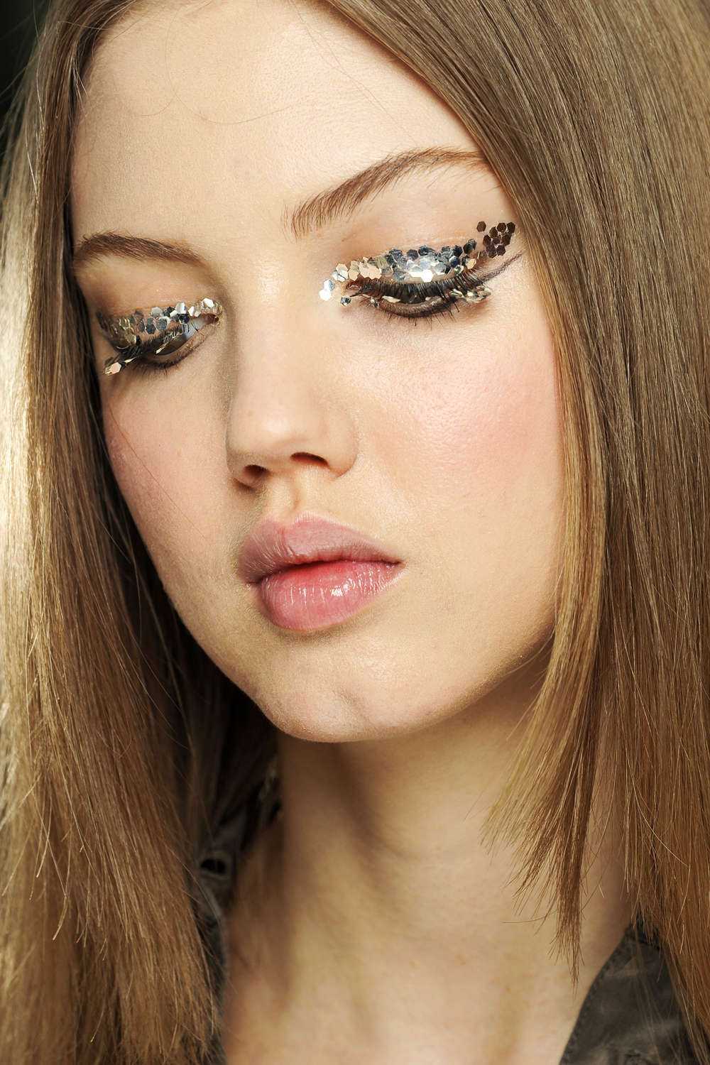 Еще один тренд сезона — это всем давно знакомый и любимый глиттер. При этом область нанесения сияющих частиц совершенно не важна, это и губы и веки и т.д.