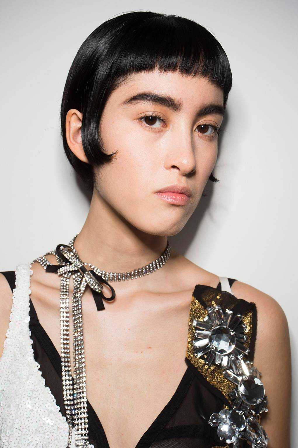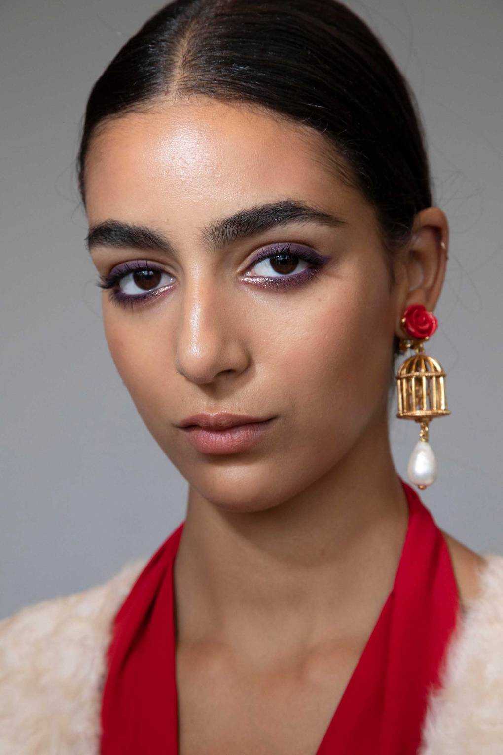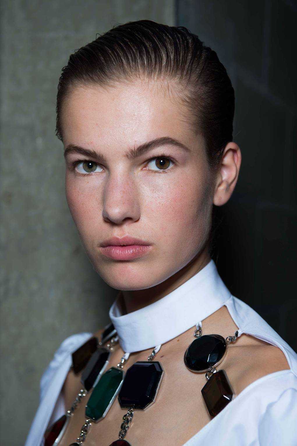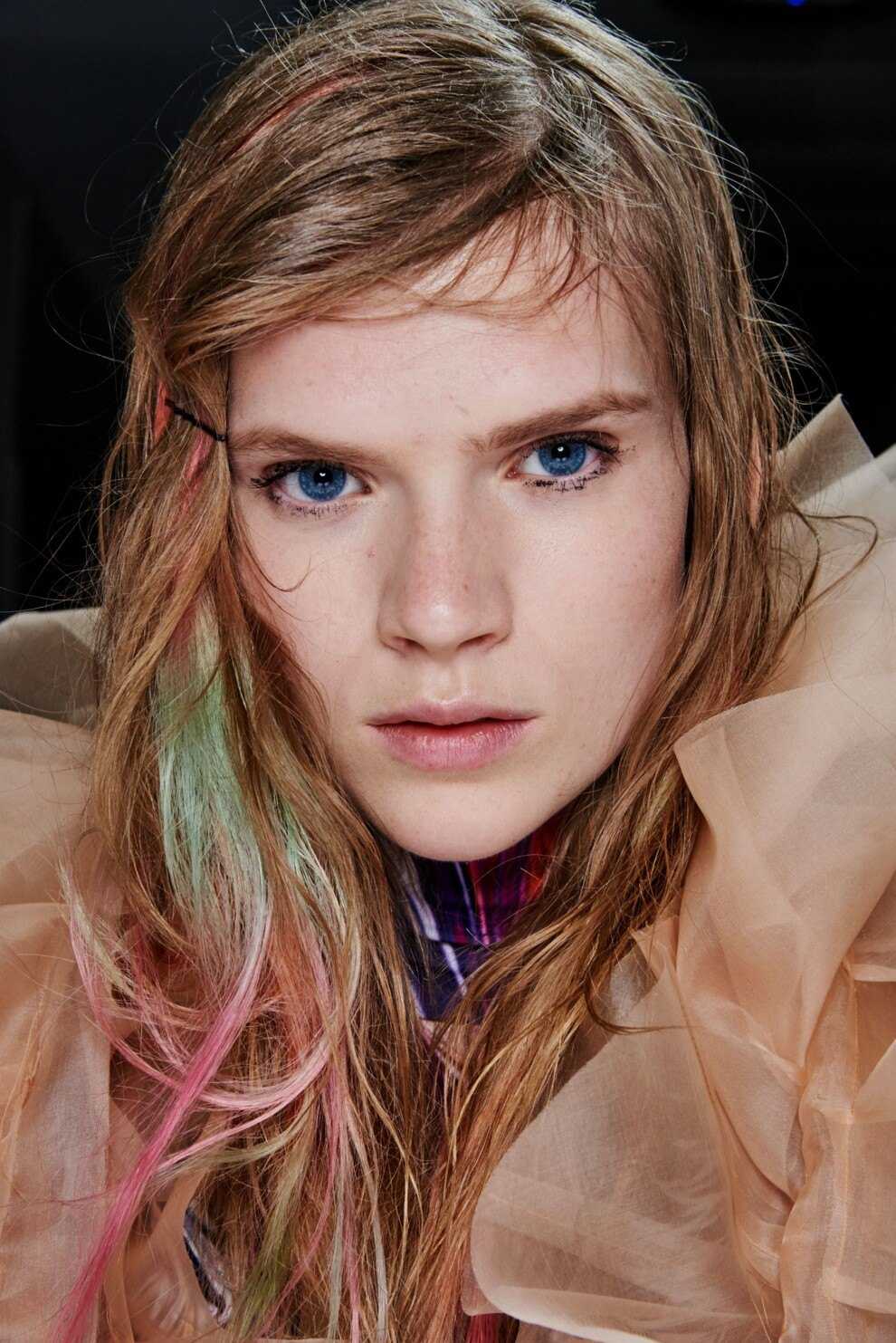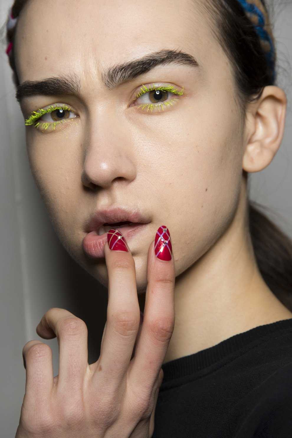 Вечная классика. В некоторых коллекциях наблюдаем моделей с минимумом макияжа и яркой красной помадой. Выглядело необычно, но свежо. Если вы еще не в секте среди поклонников красной помады, то самое время начать подбирать свой идеальный оттенок.