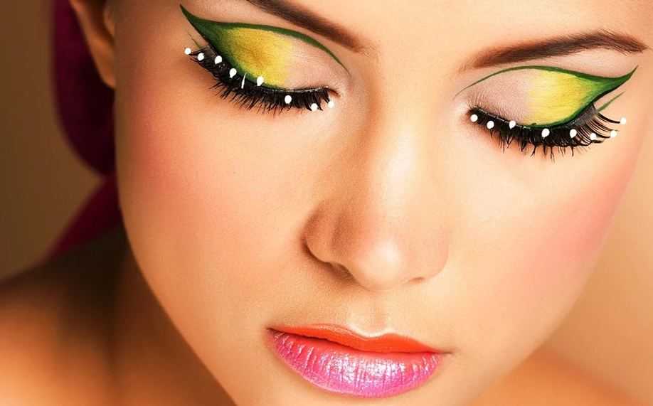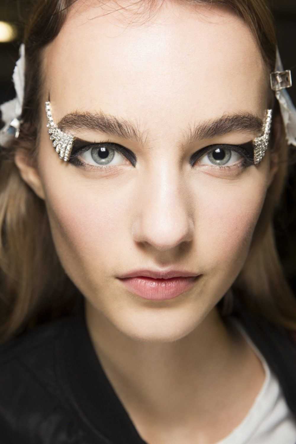 - макияж глаз типа «кошачий глаз» с широкими стрелками остается фаворитом. Можно использовать градиентные стрелки с контрастами и плавными переходами, дополненные стразами или элементами face art.