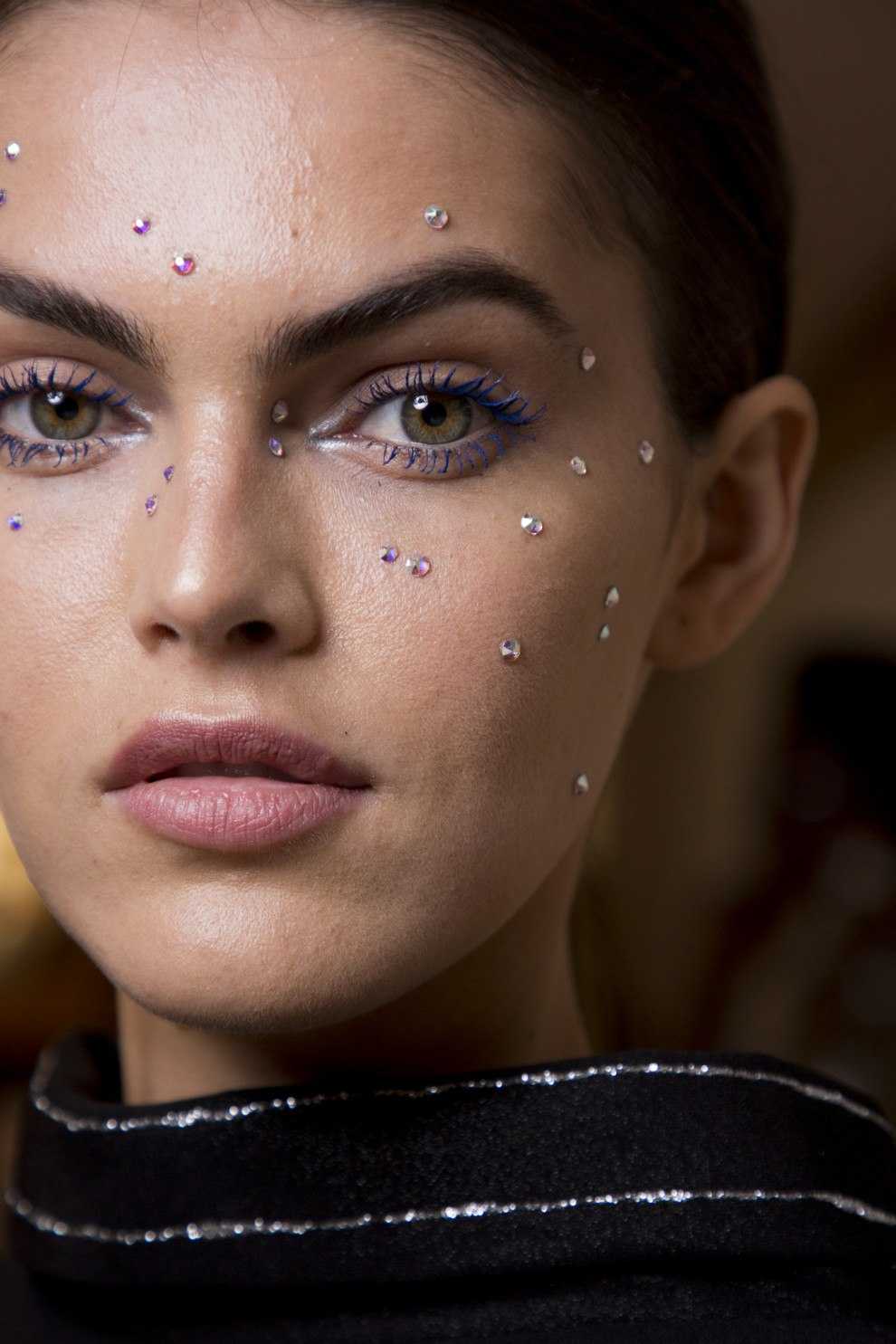 К небольшим блесткам в макияже привыкли многие девушки. Но в осенне-зимнем сезоне визажисты предлагают использовать их в большем количестве. Также для этого стоит приобрести различных оттенков глиттер и стразы. Примечательно, что наносить такие детали стоит не только на веки, но и плавно заходить на другие зоны. Смотрится это очень красиво и современно. Такой макияж точно станет идеальным украшением праздничного или вечернего образа.