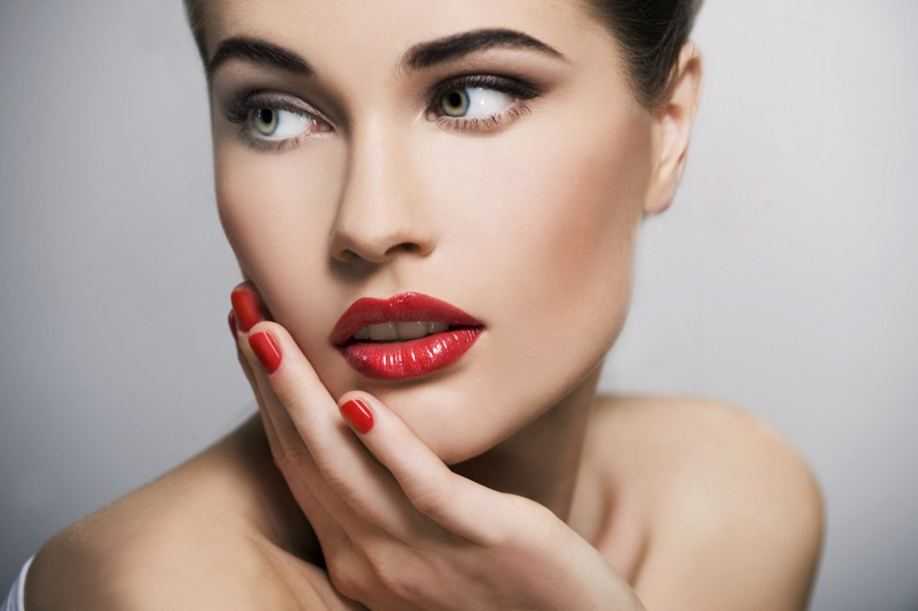 Чтобы акцентировать внимание на губах, важно сделать правильный макияж всего лица. Для этого нужно добиться совершенного тона, замаскировать все недостатки кожи. Обязательно использование румян и хайлайтеров — для получения естественного сияния кожи лица