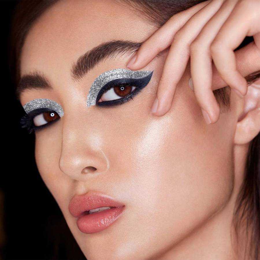 В Новый год вместо угольной подводки будет уместен макияж с помощью карандаша с блестками.