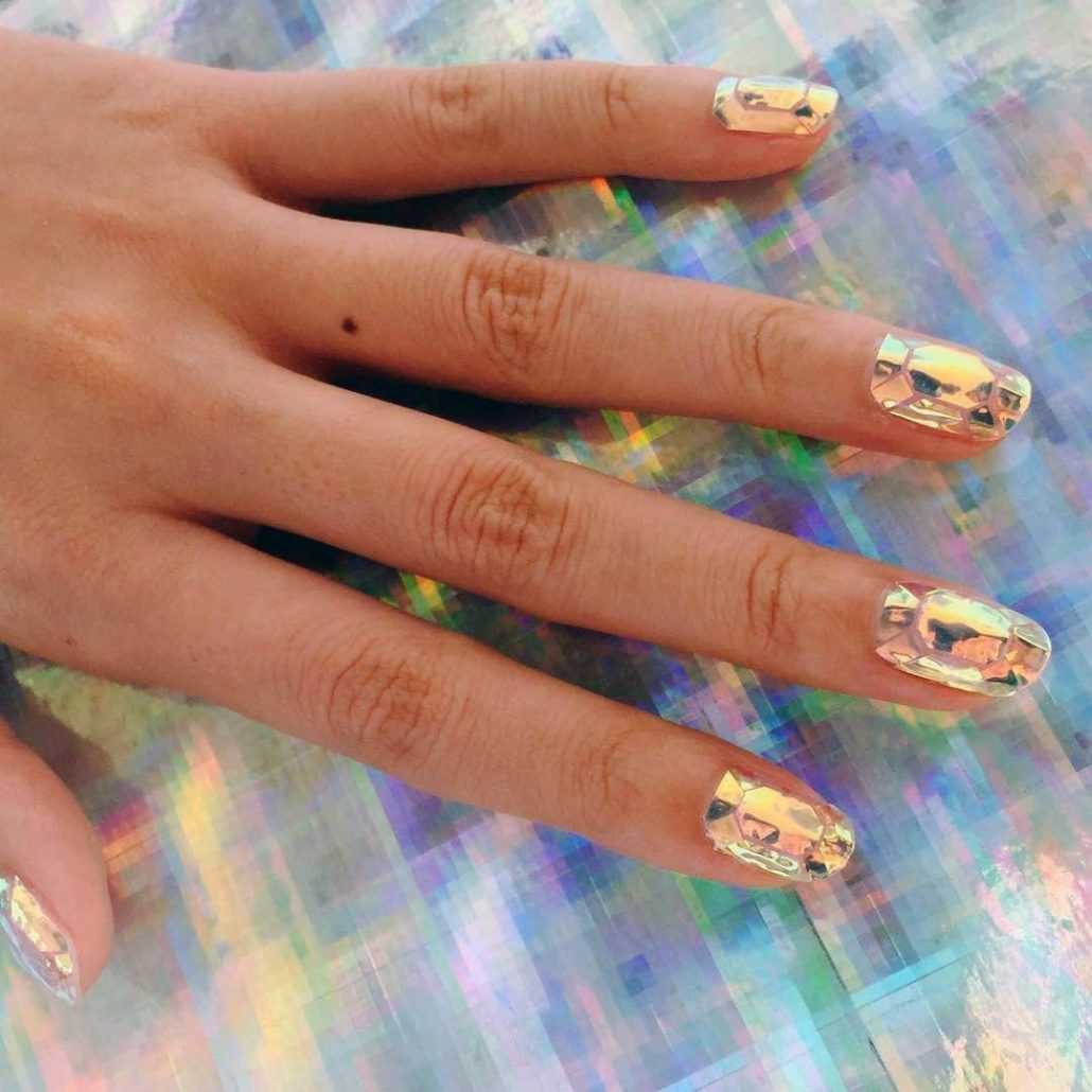 Зачастую девушки используют данный вид оформление летом. Ведь блики и переливание на солнце смотрятся очень необычно! С помощью умелого комбинирования цветов и переливающих осколков можно составить настоящий калейдоскоп.