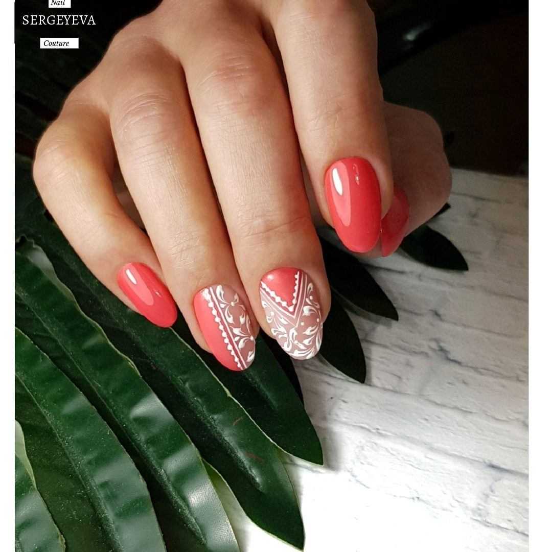 Кружевные узоры на однотонной основе всегда выглядят элегантно и дорого. Поэтому в летний период 2020 года просто невозможно не выполнить такой дизайн. Украсить ноготки кружевом можно при помощи стемпинга или ручной росписи. Конечно, выполнить аккуратный и изящный орнамент не так уж и просто, но окончательный эффект однозначно вызовет восхищение у окружающих. Такой дизайн очень часто выбирают невесты для своего свадебного образа.
