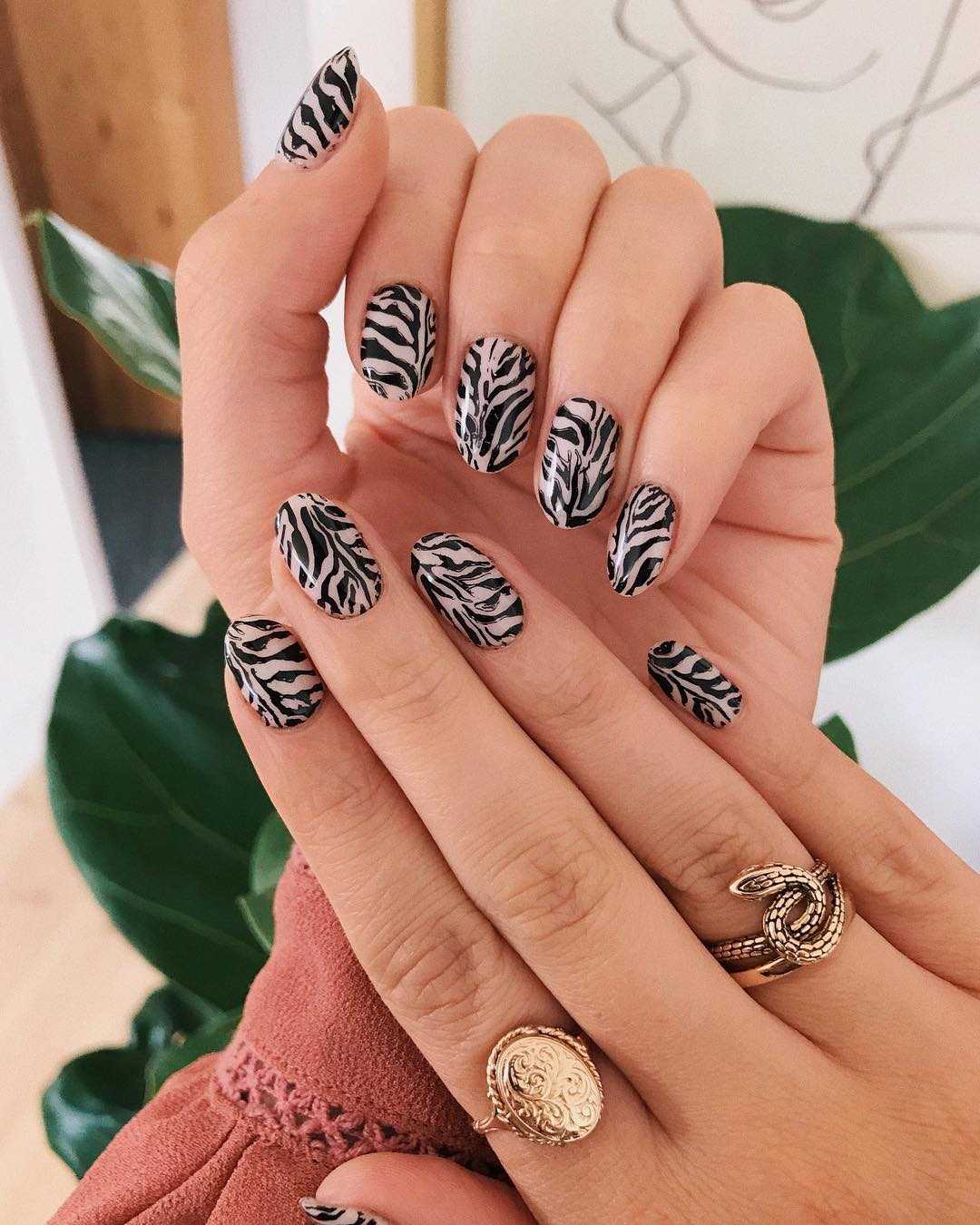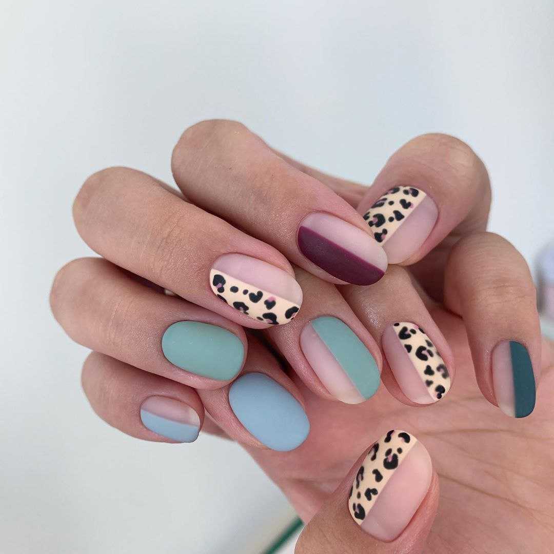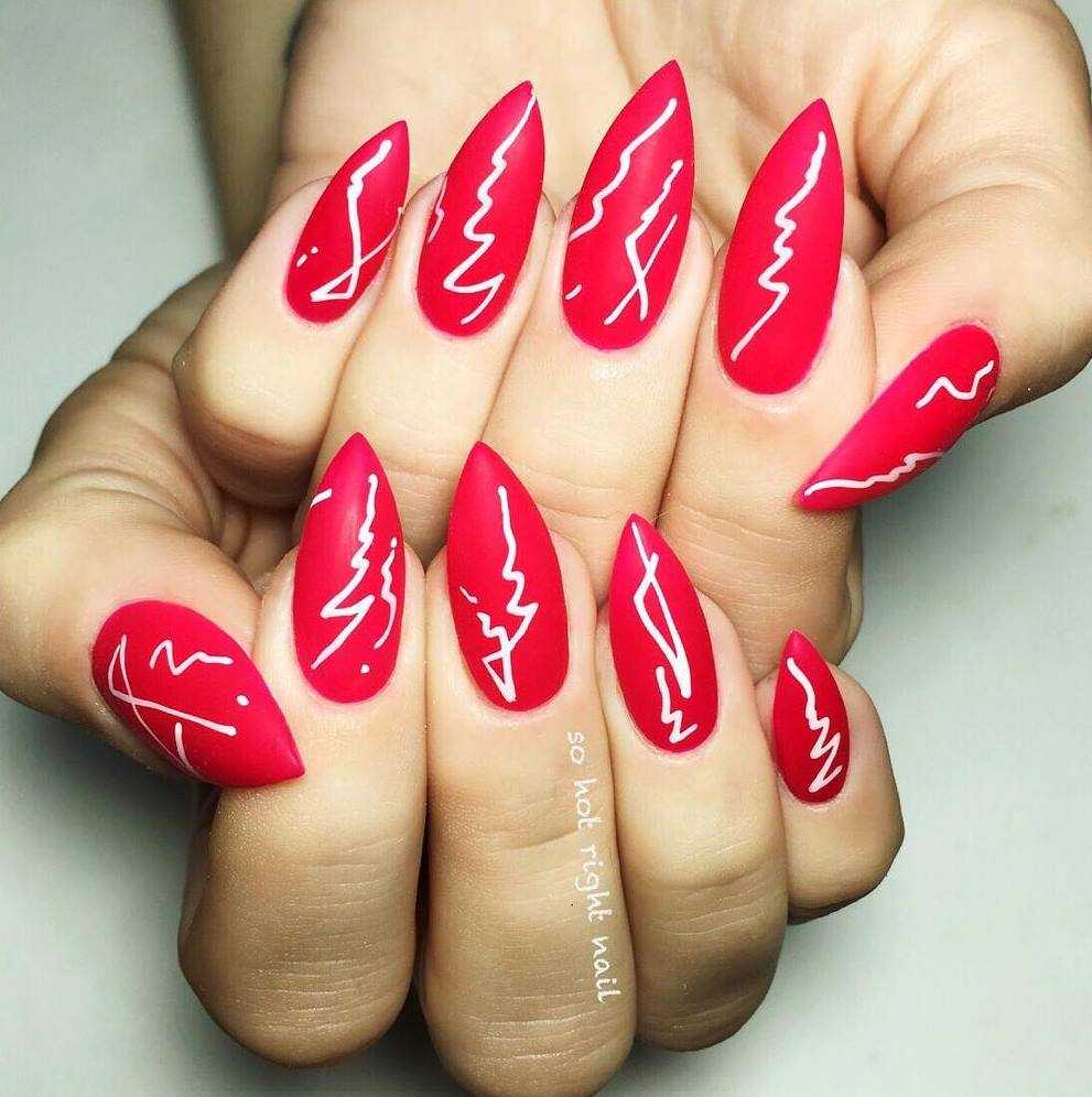Особое внимание следует уделить геометрическим формам, которые заполнены хищным узорам, принтованным полоскам и матовому топу. Миндалевидная форма ноготков в подобном исполнении весьма эффектно смотрится без дополнительных украшений
