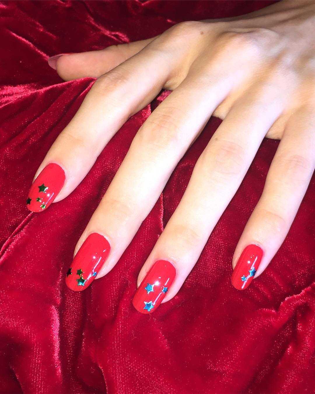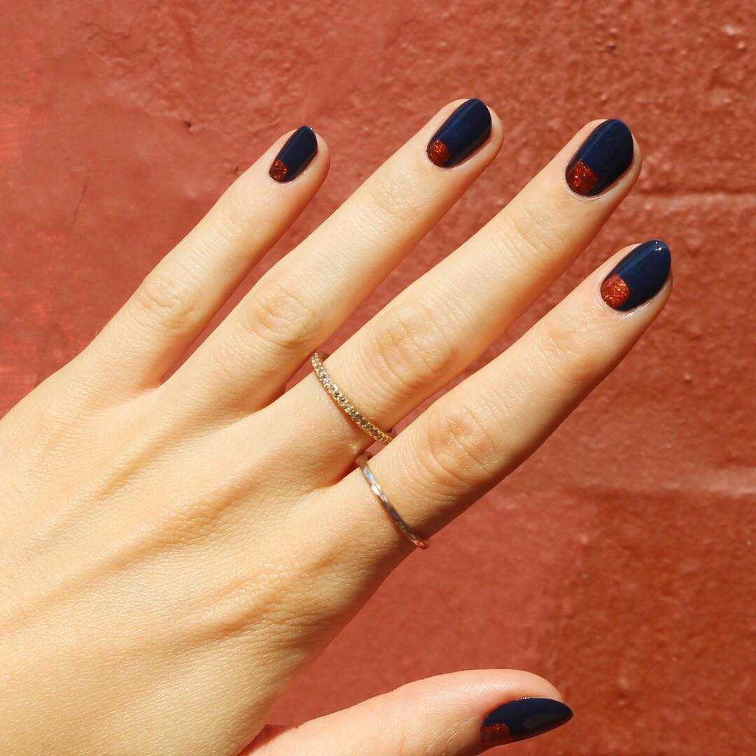 Но по желанию можно украсить соседние ноготки блёстками или камнями.
