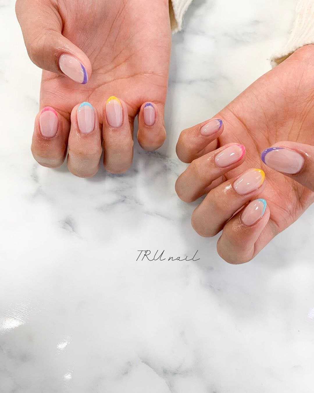 Этот удивительный дизайн маникюра никогда не сможет покинуть моду. Его универсальность и нежное исполнение способно покорить любое женское сердце. В летнем сезоне 2020 года мастера рекомендуют всего лишь немного преобразить французский маникюр при помощи ярких и сочных оттенков. Теперь стильно и довольно оригинально смотрится френч, если привычную белую линию заменить желтым, салатовым или бирюзовым оттенком лакового покрытия. Такой дизайн лучше всего выполнять на однотонной базе. Допустим такой вариант, при котором всего две ногтевые пластины украшены френчем, а остальные ноготки покрыты однотонным покрытием.