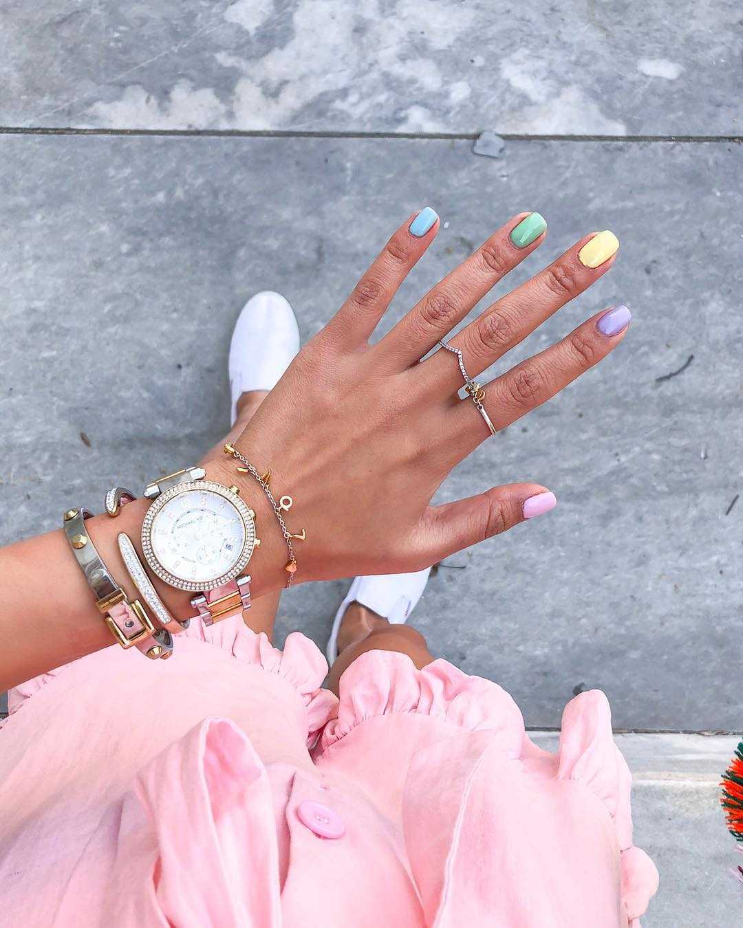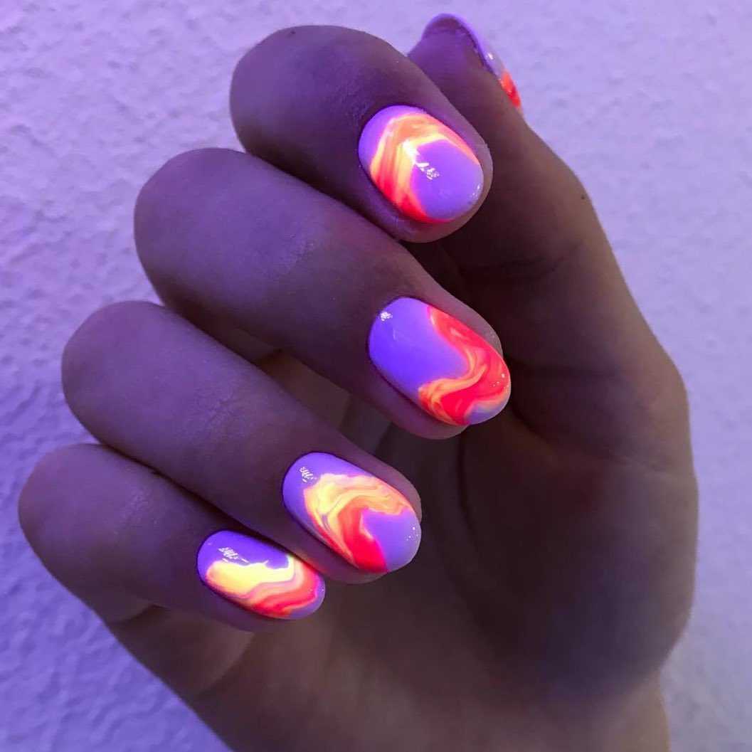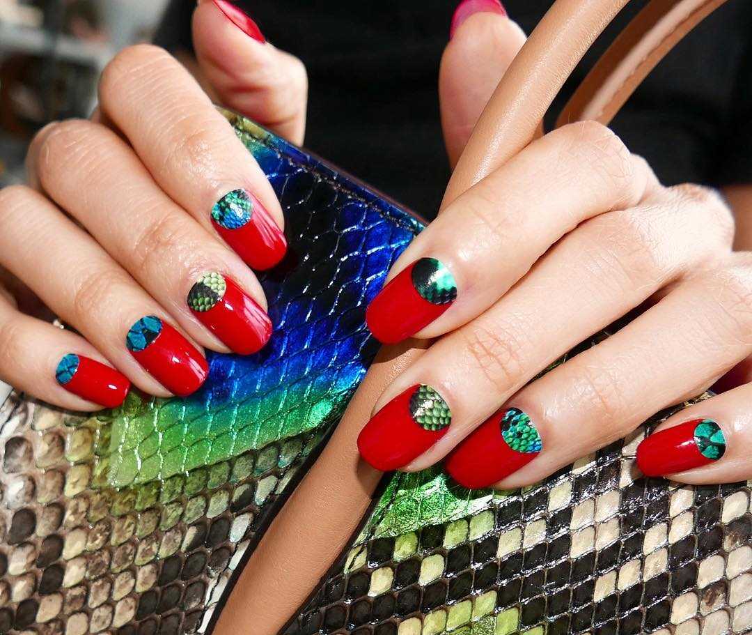 Ягодный, розовый, малиновый оттенки добавляют образу романтичности. Поэтому маникюр лучше всего будет выглядеть в сочетании с платьями. Для путешествий выбирайте более смелые, насыщенные и даже неоновые тона. Это может быть зеленый, оранжевый или желтый цвет. Отлично смотрится синий и красный маникюр. В отличии от предыдущих вариантов, он будет более сдержанным. Каждый из вариантов — прекрасный выбор для жаркого лета.