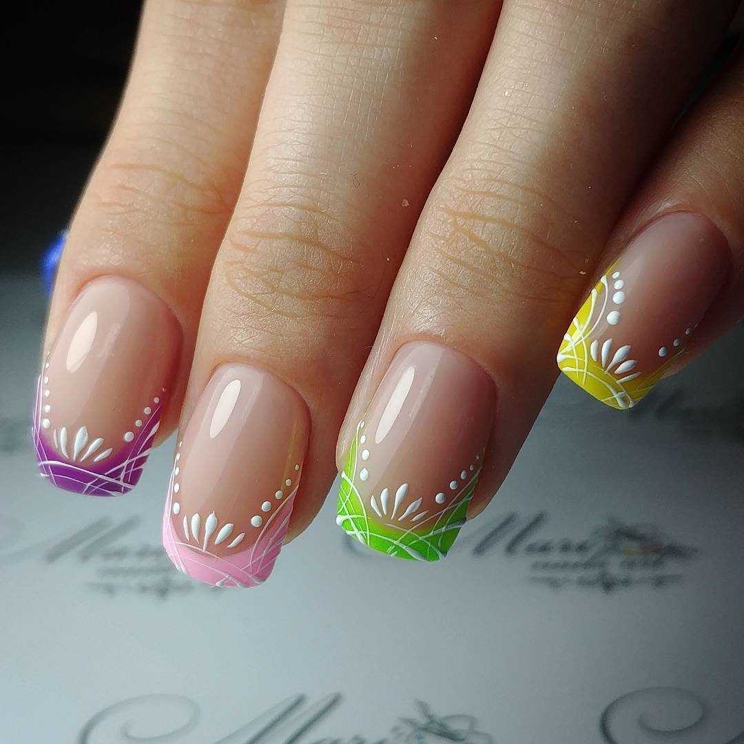 Плавный переход оттенков отлично смотрится в любое время года. Но именно летом такой маникюр буквально на пике популярности. Только представьте, насколько красиво в данной технике будут выглядеть яркие цвета. Особенно, если дополнить их тематическими рисунками и декором.