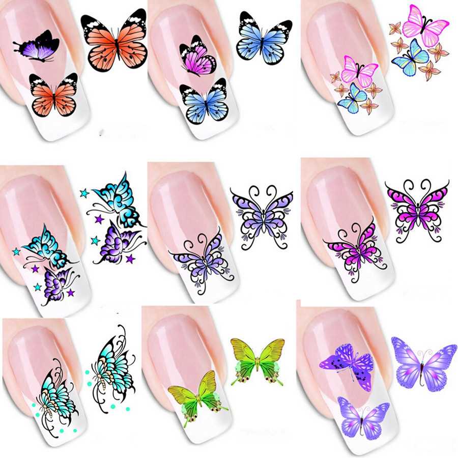Создать эффектный дизайн помогут наклейки. Выбрать рисунок с бабочками можно в любом специализированном магазине. Как правило, наклейки делятся на два типа: самоклеящиеся и водные. В случае с водным вариантом придётся немного потрудиться. С помощью тонкой кисти необходимо прокрасить все места, куда после ляжет наклейка, чтоб дизайн после высыхания долго держался на пластине.