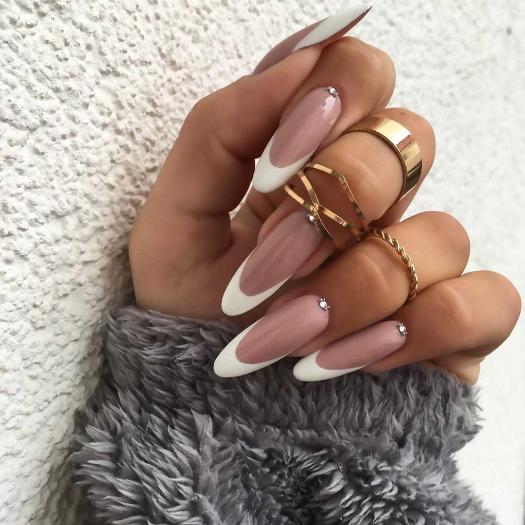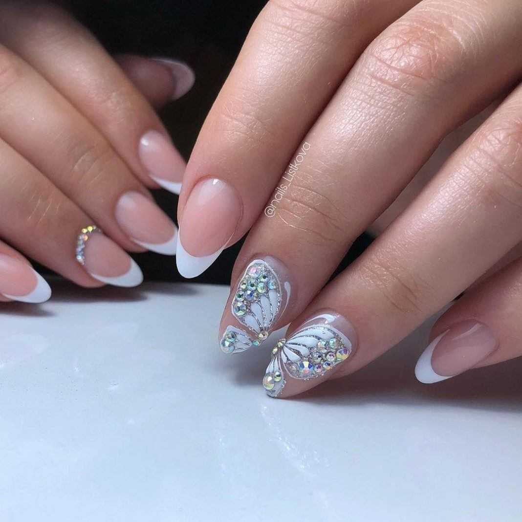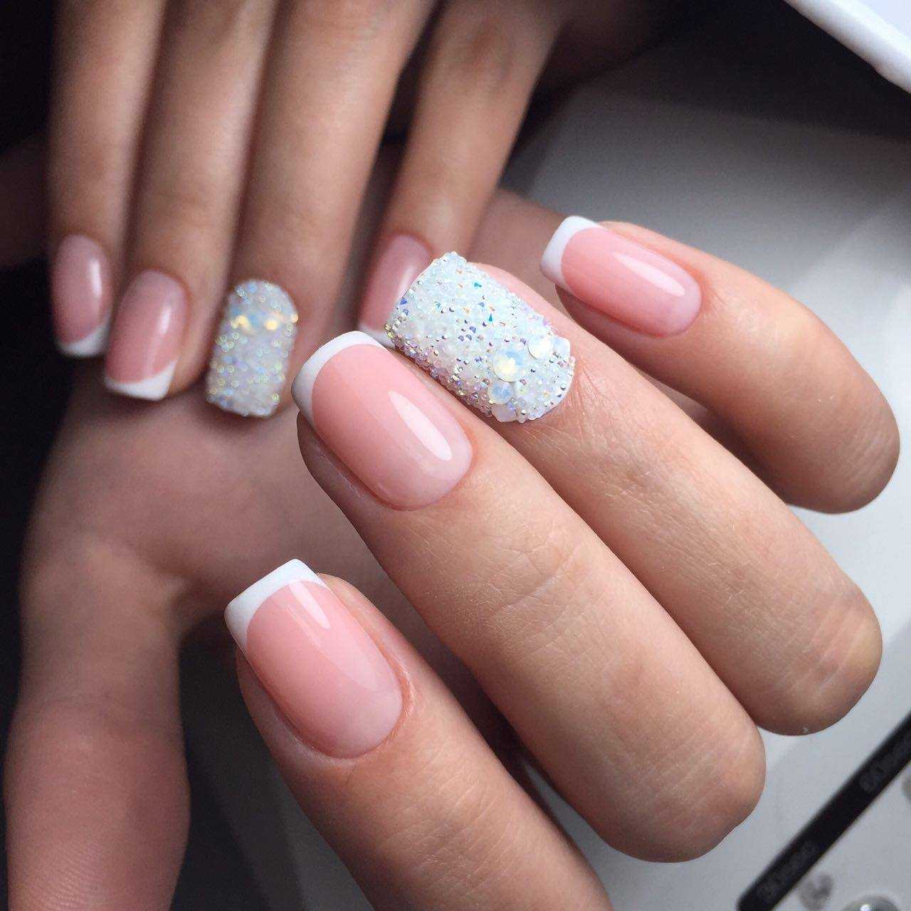 Френч – тот дизайн ногтей, который стерпит соседство с самым разнообразным декором. Именно стразы первые стали появляться во французском дизайне ногтей и удачно вписались в эту классическую технику маникюра.